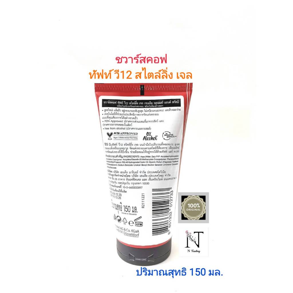 ชวาร์สคอฟ ทัฟท์ วี12 สไตล์ลิ่ง เจล เจลเทิล ออนแฮร์ แอนด์ สกัลป์ 150 มล./Schwarzkopf taft V12 STYLING GEL Net 150 ml.