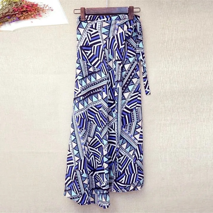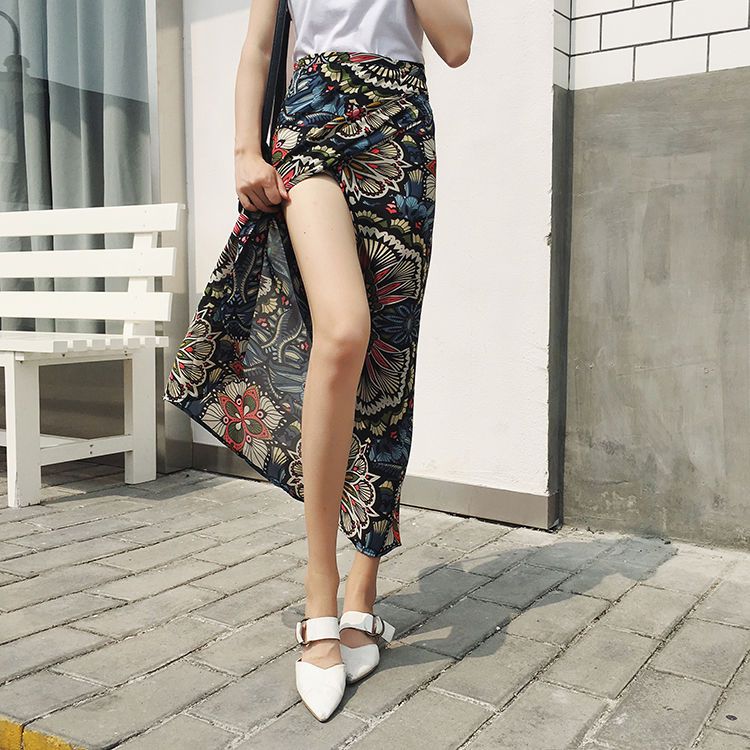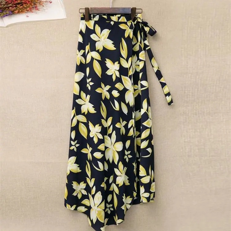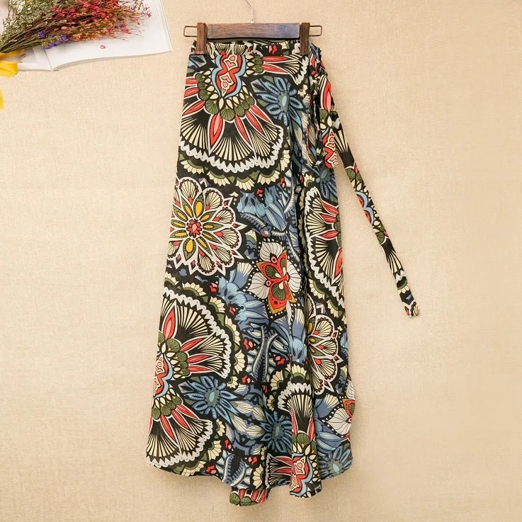 กระโปรงแม็กซี่ยาว ผ้าชีฟอง พิมพ์ลายดอกไม้ สไตล์โบฮีเมียน วินเทจ เหมาะกับฤดูใบไม้ผลิ ฤดูร้อน ชายหาด สําหรับผู้หญิง 1 ชิ้น