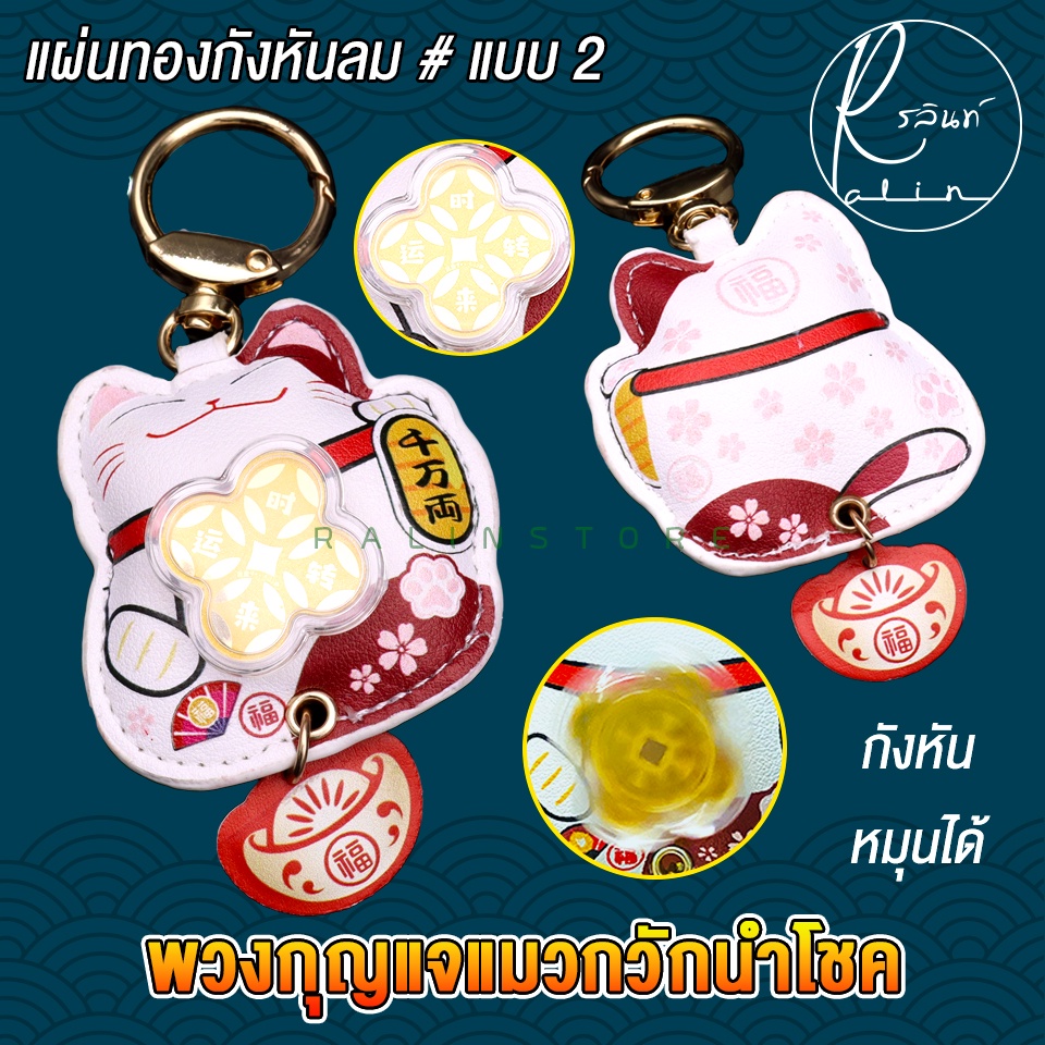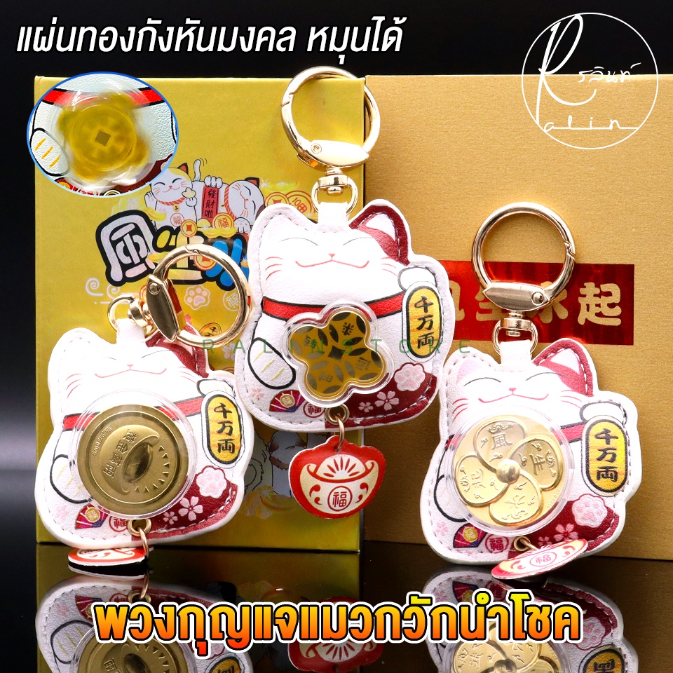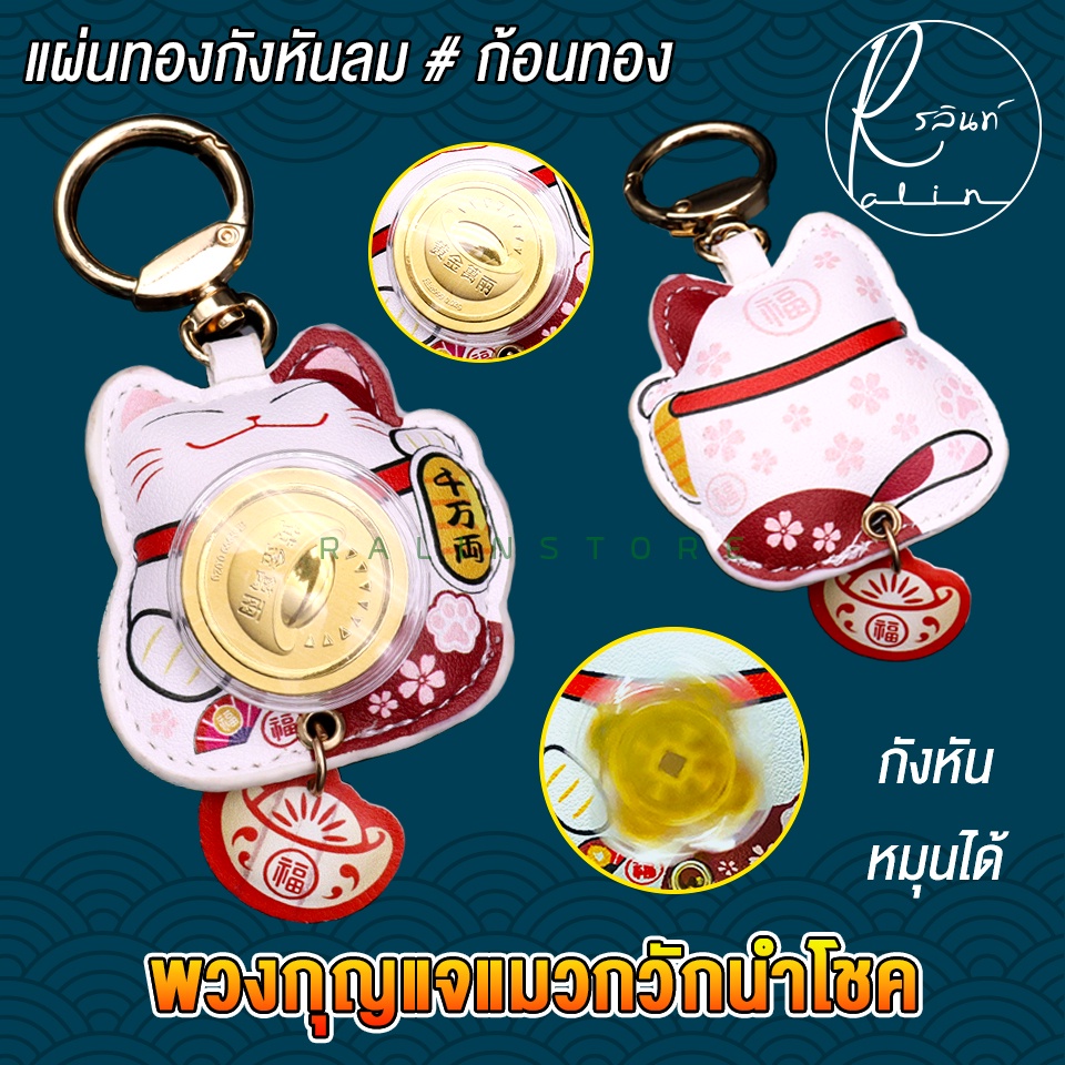 พวงกุญแจแผ่นทองกังหัน พวงกุญแจแมวกวัก หมุนได้ แมวกวักกังหันนำโชค เรียกทรัพย์ เสริมดวง (พร้อมส่ง)