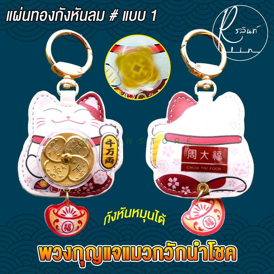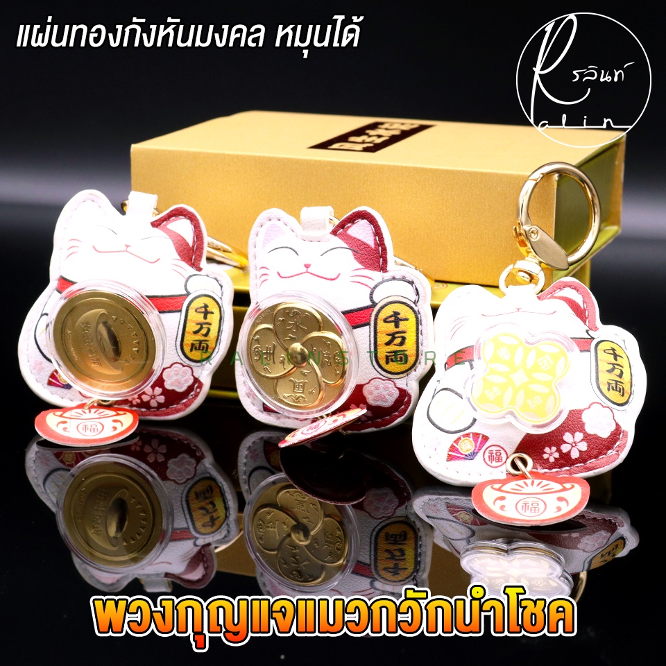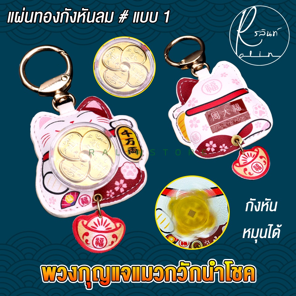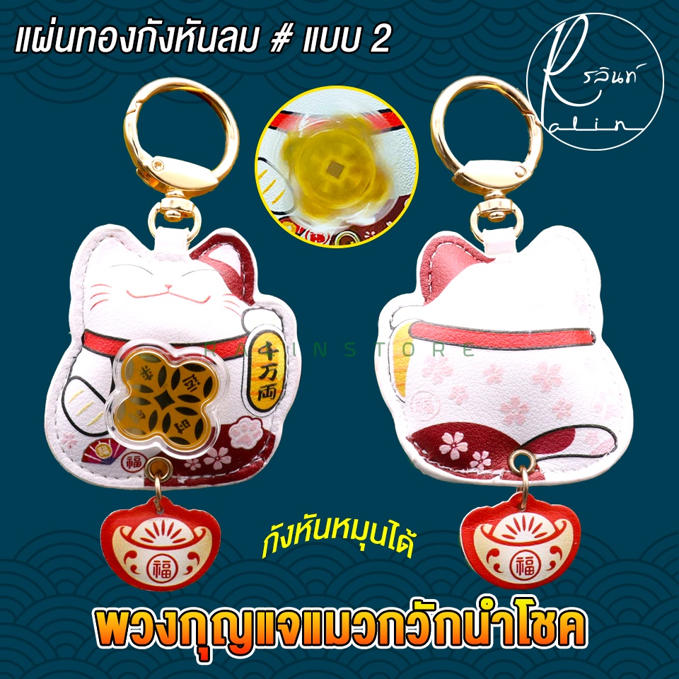 พวงกุญแจแผ่นทองกังหัน พวงกุญแจแมวกวัก หมุนได้ แมวกวักกังหันนำโชค เรียกทรัพย์ เสริมดวง (พร้อมส่ง)