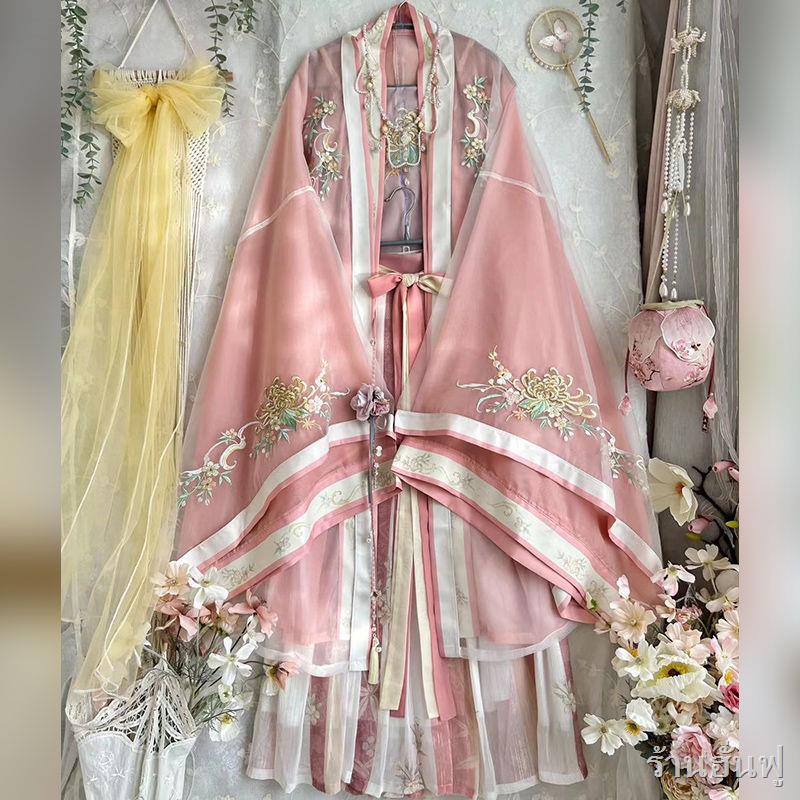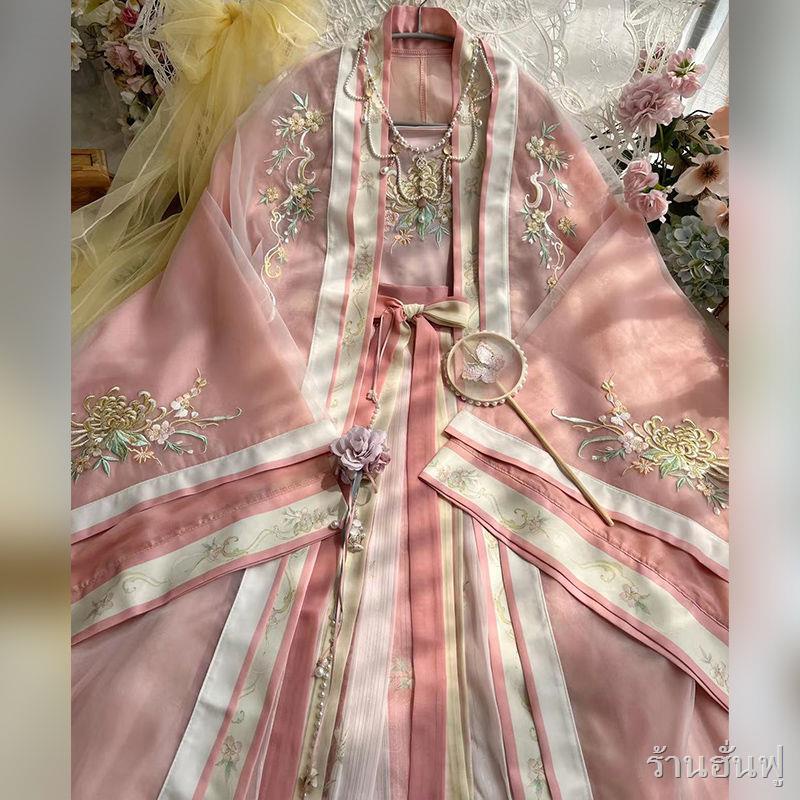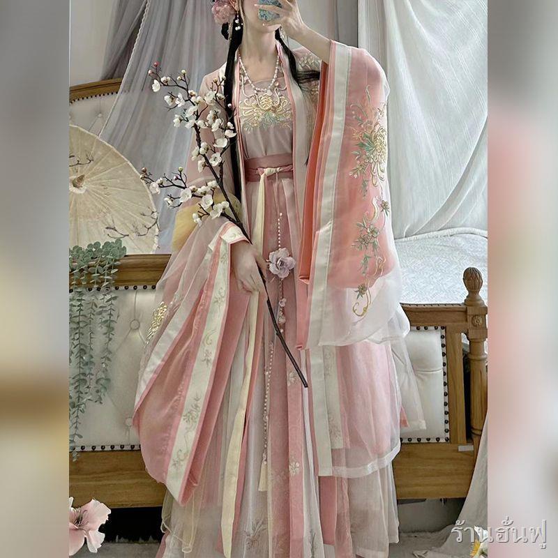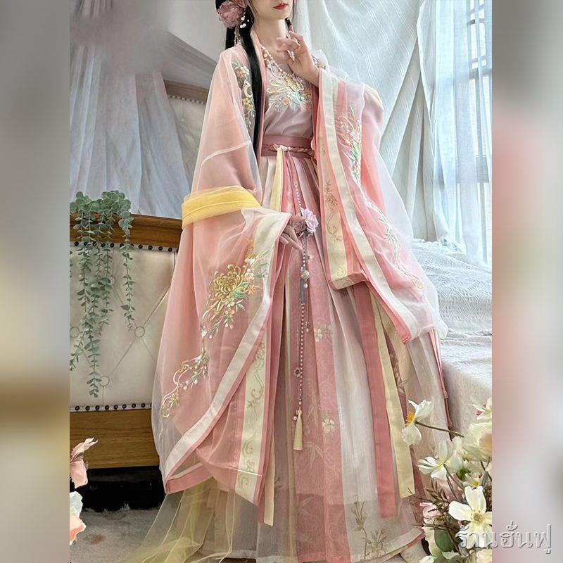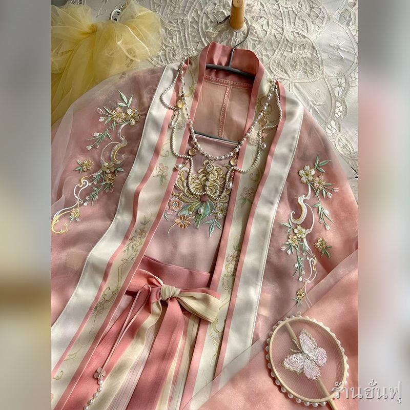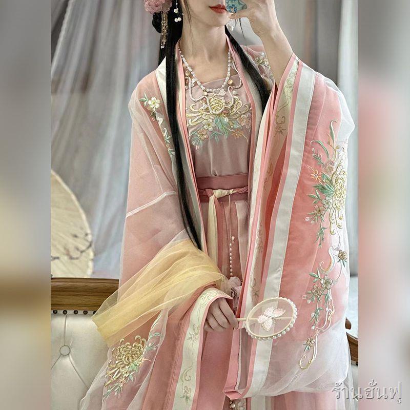 พร้อมส่ง❥👑ชุดจีนโบราณ👑ต้นฉบับเอวแขนใหญ่เชือกแขวนคอหนึ่งชิ้นจีบกระโปรงปักเพลง Hanfu ผู้หญิง