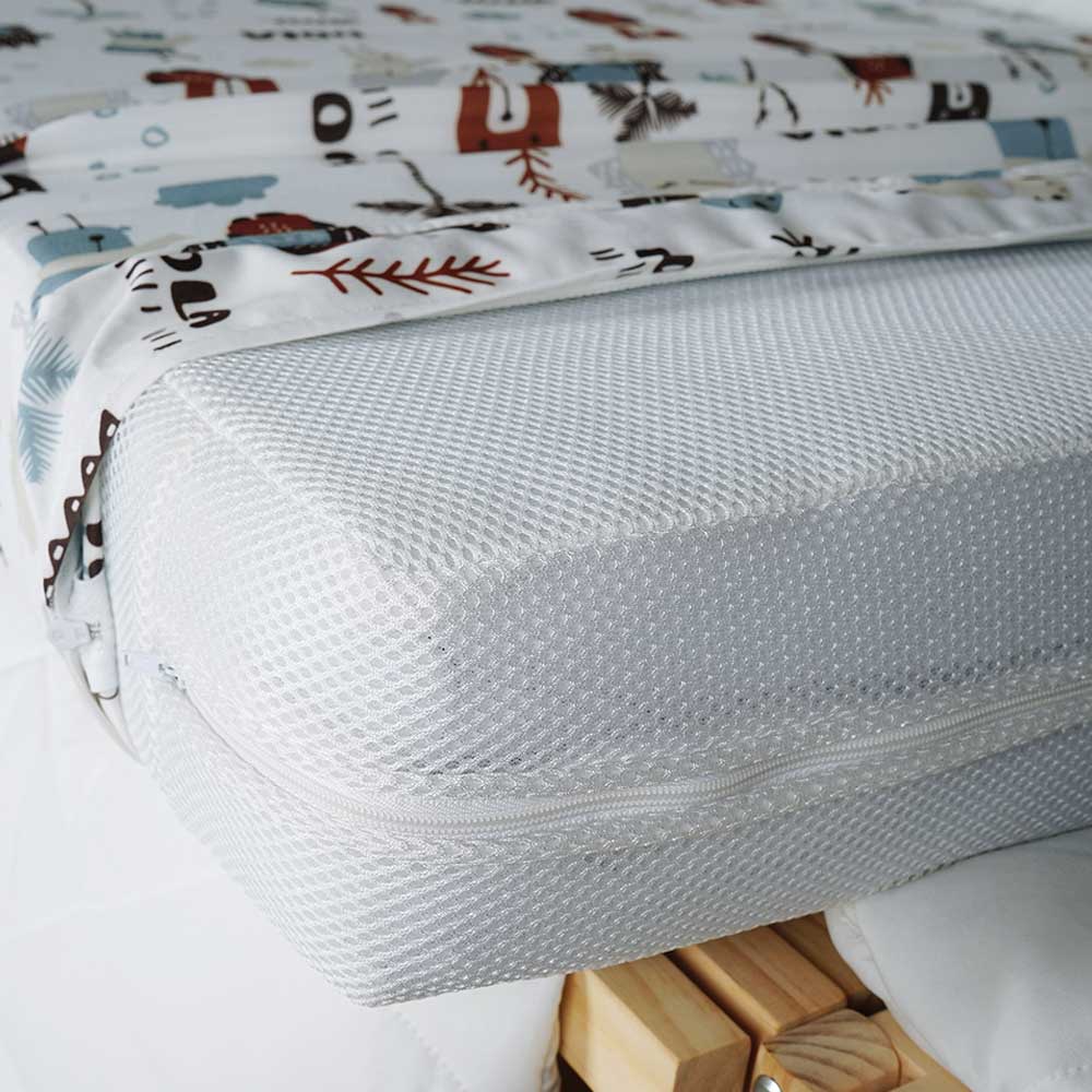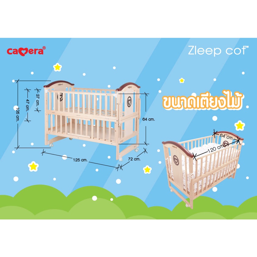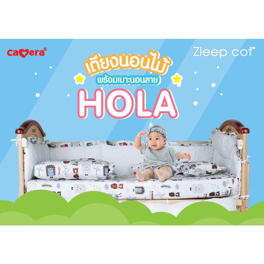 CAMERA | เตียงไม้ สำหรับเด็ก พร้อมชุดเบาะครบเซ็ต ลาย HOLA ระบายอากาศ 3D