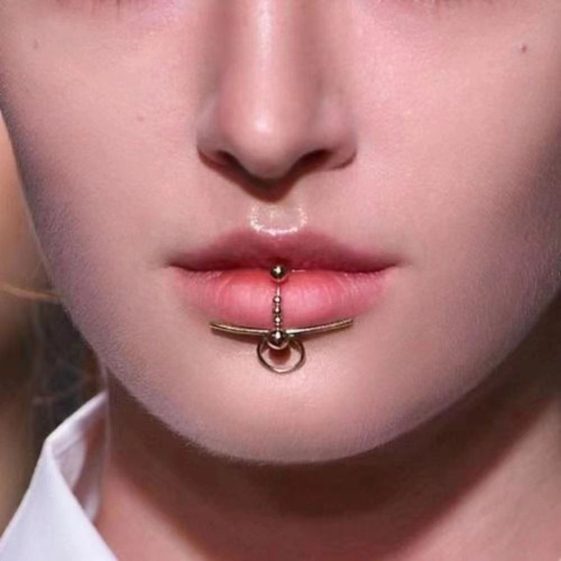 แหวนเจาะริมฝีปากปลอมเจาะริมฝีปากทองแดงปลอมกะบังปากคลิปเจาะปากไม่เจาะ