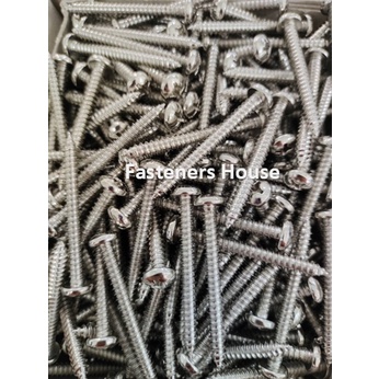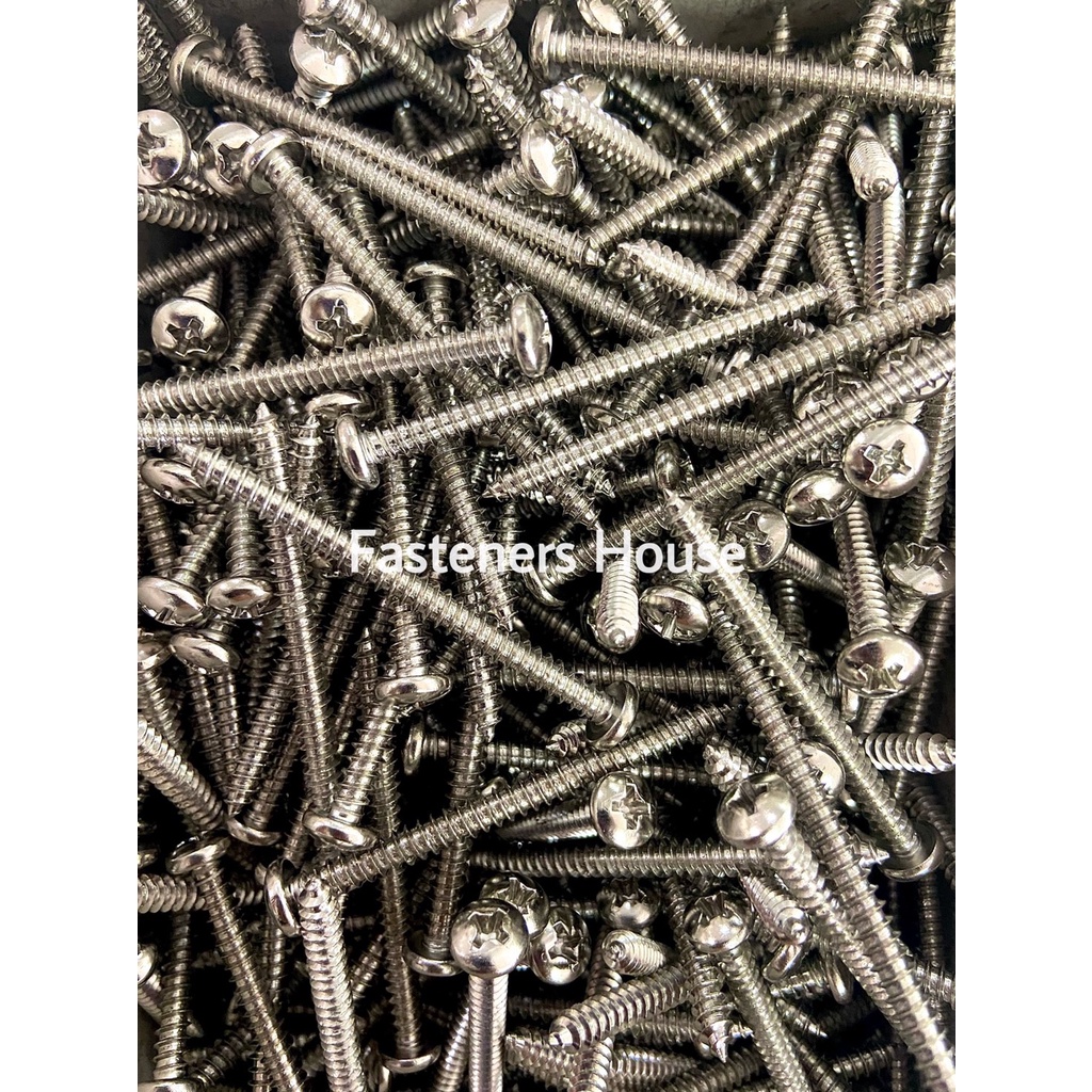 สกรูเกลียวปล่อย เหล็กชุบนิเกิ้ล หัวกลมนูน หัวกลมแฉก ตะปูควง มีหลายความยาว