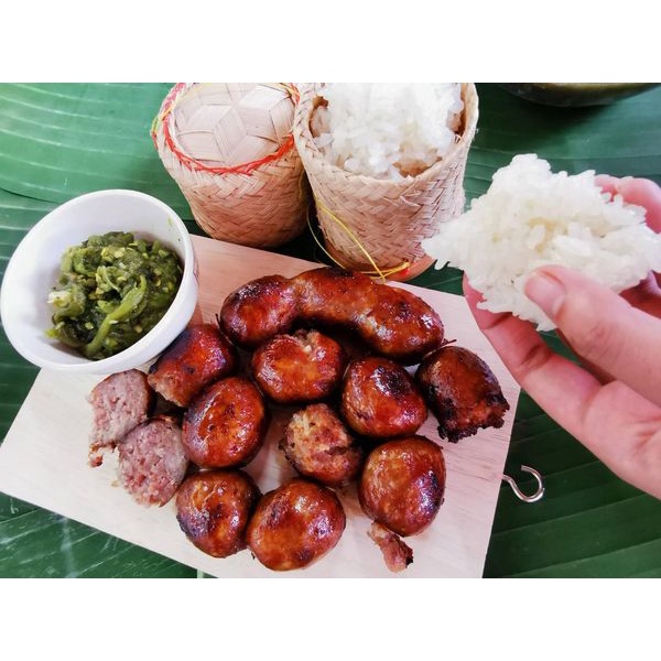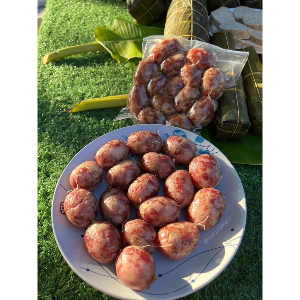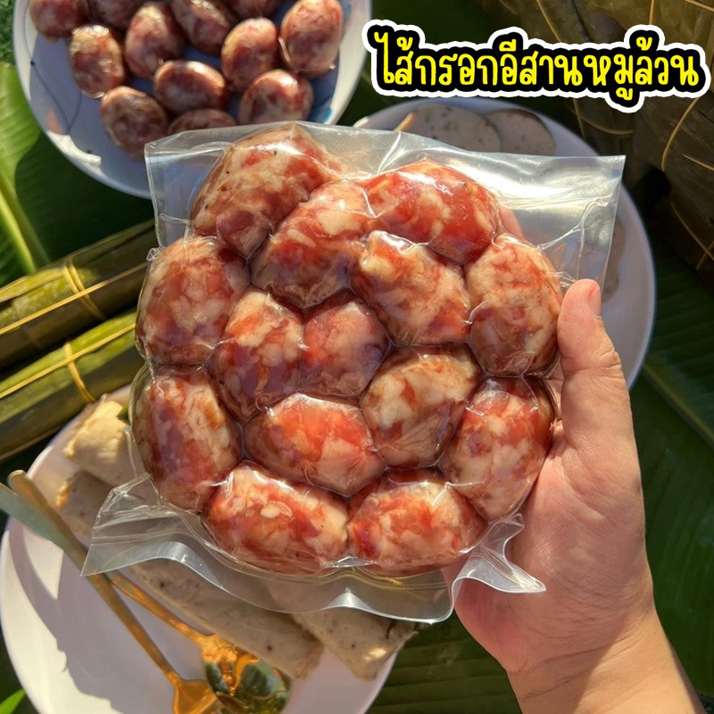 ไส้กรอกอีสานหมูล้วน ไม่ผสมวุ้นเส้น สูตรมันน้อย ขนาด 500 กรัม