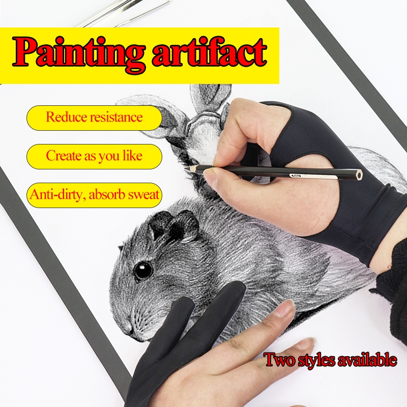 ถุงมือวาดภาพกราฟฟิค ซ้าย ขวา สองนิ้ว ไซซ์ XS S M L สําหรับวาดภาพกราฟิก โต๊ะ จัดส่งด่วน