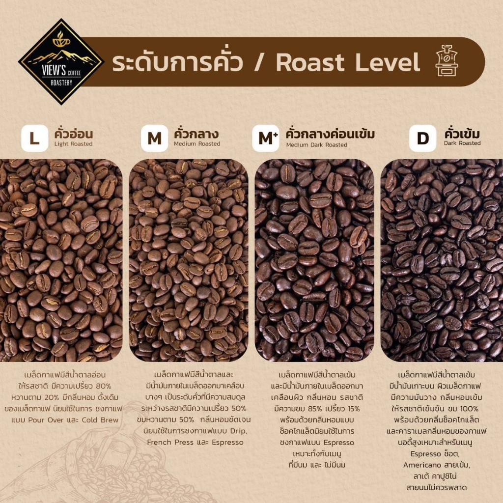 1. คั่วกลาง (Medium Roast) : บอดี้ สะอาด อ่อน บางเบา มีรสเปรี้ยวสัมผัสคล้ายกับชาผลไม้ แต่ยังคงความหอมของกาแฟอ่อนๆ หวานปลายลิ้น ดื่มแล้วรู้สึกสดชื่น