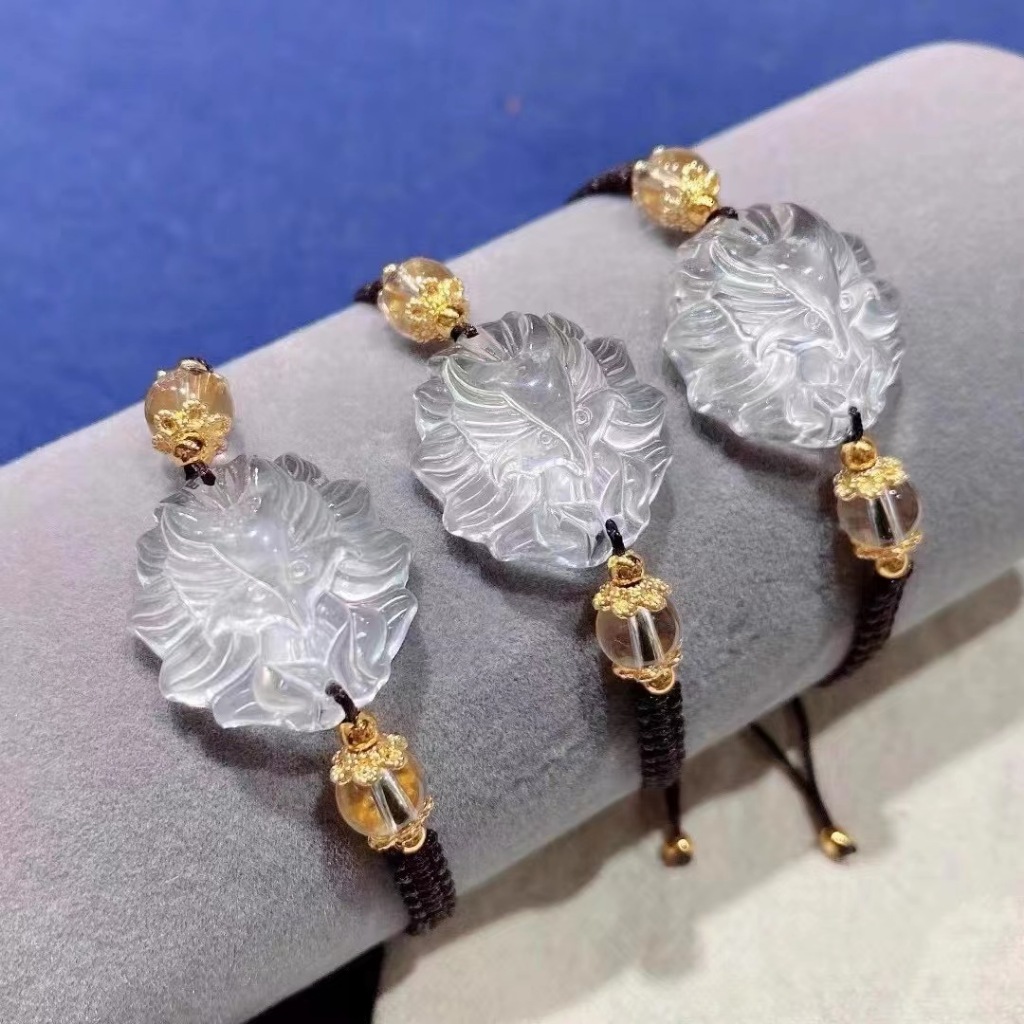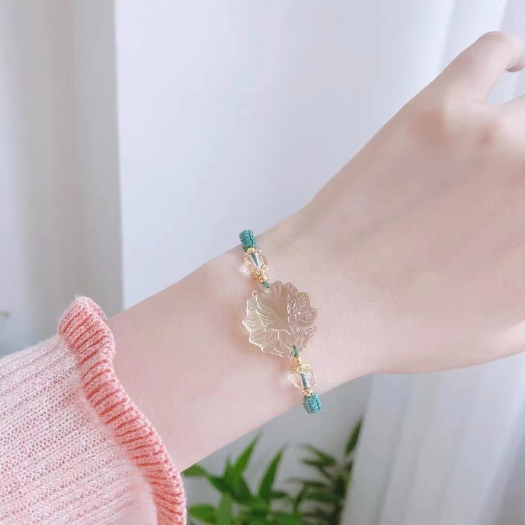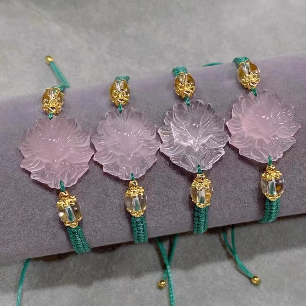 สร้อยข้อมือ เชือกคริสตัลธรรมชาติ รูปสุนัขจิ้งจอกเก้าหาง สีชมพู สําหรับผู้หญิง