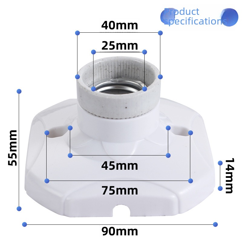 ขั้วแป้นหลอดไฟ ขั้วแป้นใหญ่ พลาสติก E27 ทรงสี่เหลี่ยม ขั้วเซรามิค