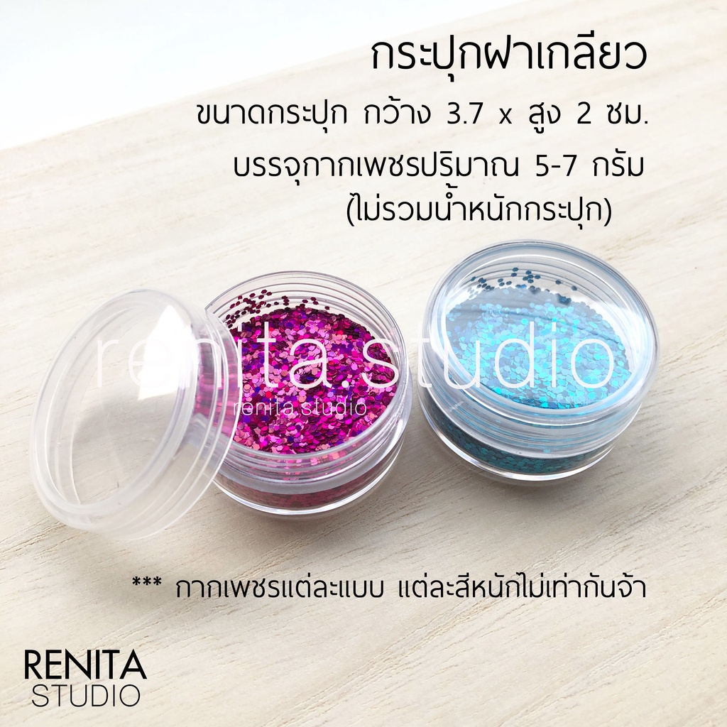 – กระปุกพลาสติก ขนาด กว้าง 3.7 x สูง 2 ซม.