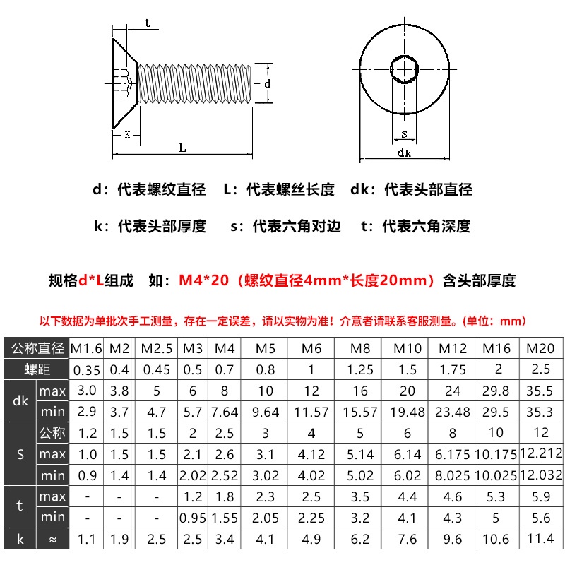 สกรูซ็อกเก็ตสเตนเลส 304 หัวจม หกเหลี่ยม M3 M4 M5