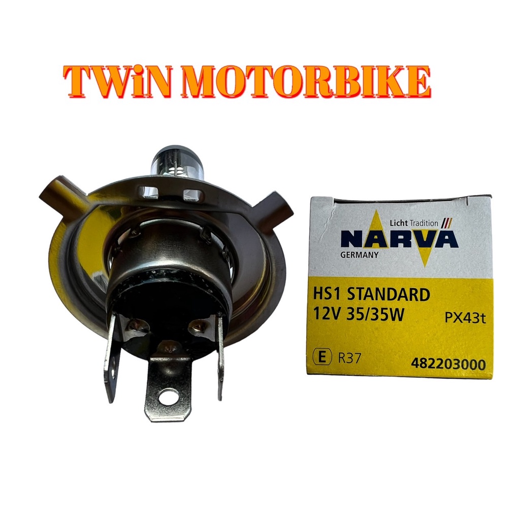 หลอดไฟหน้า 3 ขา HS1 12V 35/35W NARVA สีเดิม ใช้สำหรับรถมอเตอร์ไซด์