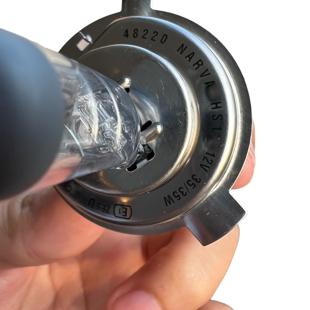 หยิบใส่ตะกร้าหลอดไฟหน้า 3 ขา HS1 12V 35/35W NARVA สีเดิม ใช้สำหรับรถมอเตอร์ไซด์