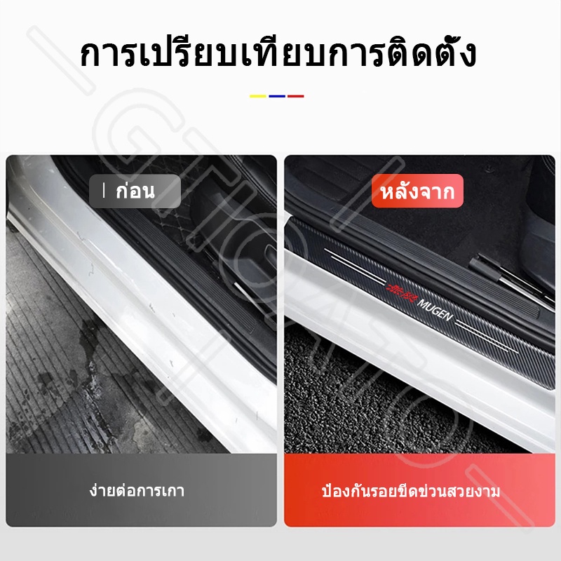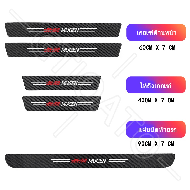 GTIOATO สำหรับ MUGEN คาร์บอนไฟเบอร์ กันรอยประตูรถยนต์ แผ่นกันรอยประตูรถยน สติกเกอร์ท้ายรถ กันรอยท้ายรถ สติ๊กเกอร์ติดรถ สำหรับ Honda City HRV Civic Jazz CRV Brio Accord Mobilio Odyssey BRV