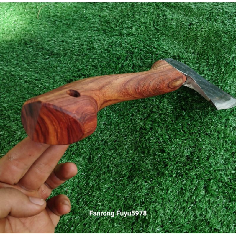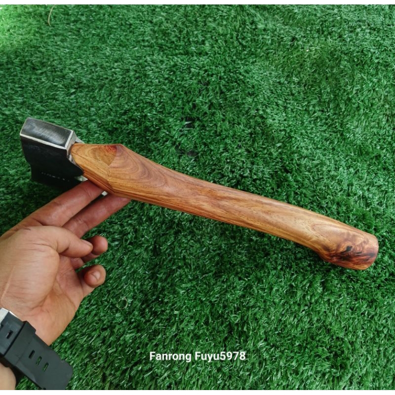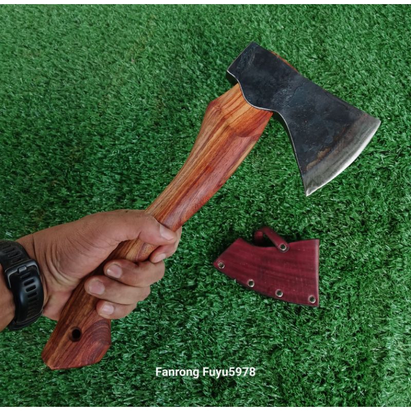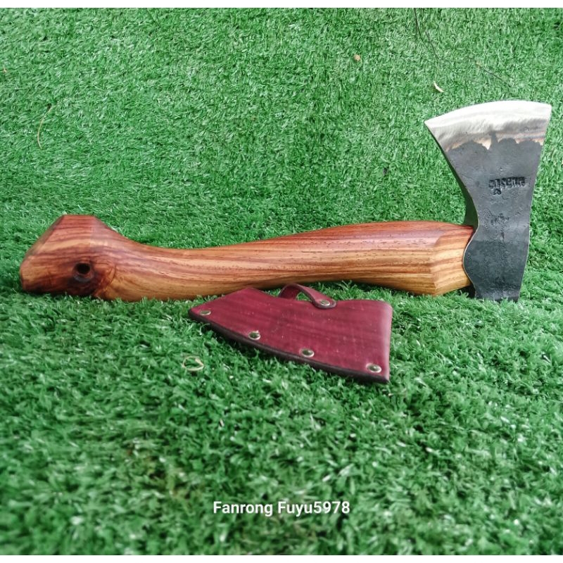 ขวานหนองบัวประกอบด้ามแก่นไม้ประดู่. ขนาด 13 นิ้ว หัวหนองบัว(แก้ม)คมกว้างขนาด 9 – 9.5 ซม.พร้อมซองหนังกันคม