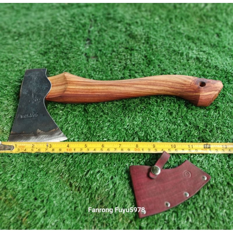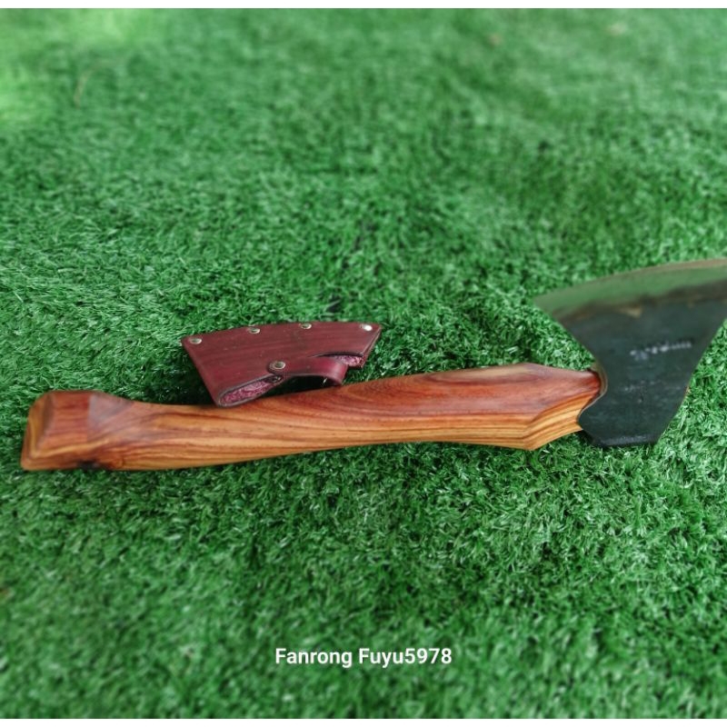 หยิบใส่ตะกร้าขวานหนองบัวประกอบด้ามแก่นไม้ประดู่. ขนาด 13 นิ้ว หัวหนองบัว(แก้ม)คมกว้างขนาด 9 – 9.5 ซม.พร้อมซองหนังกันคม