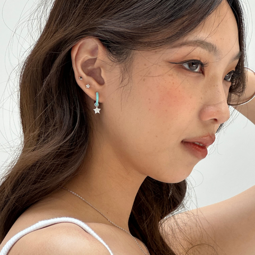ตัวแป้นจะเป็นตุ้มกลมค่ะ ตัวก้านจะเป็นเกลียว ใครที่แพ้ง่ายบอกเลยว่าใส่ได้ตลอดแน่นอนเพราะน้องเป็นเงินแท้