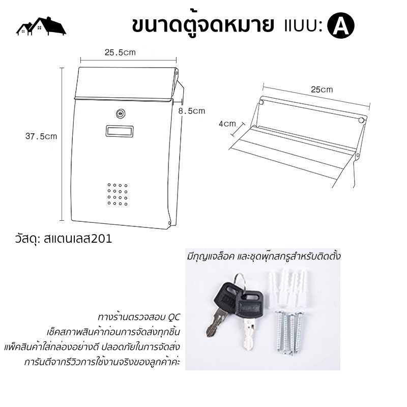 🏡กล่องจดหมายกล้างแจ้ง ทำจากวัสดุคุณภาพดี ทนทุกสภาพอากาศ แข็งแรงทนทาน ใช้งานได้ยาวนาน