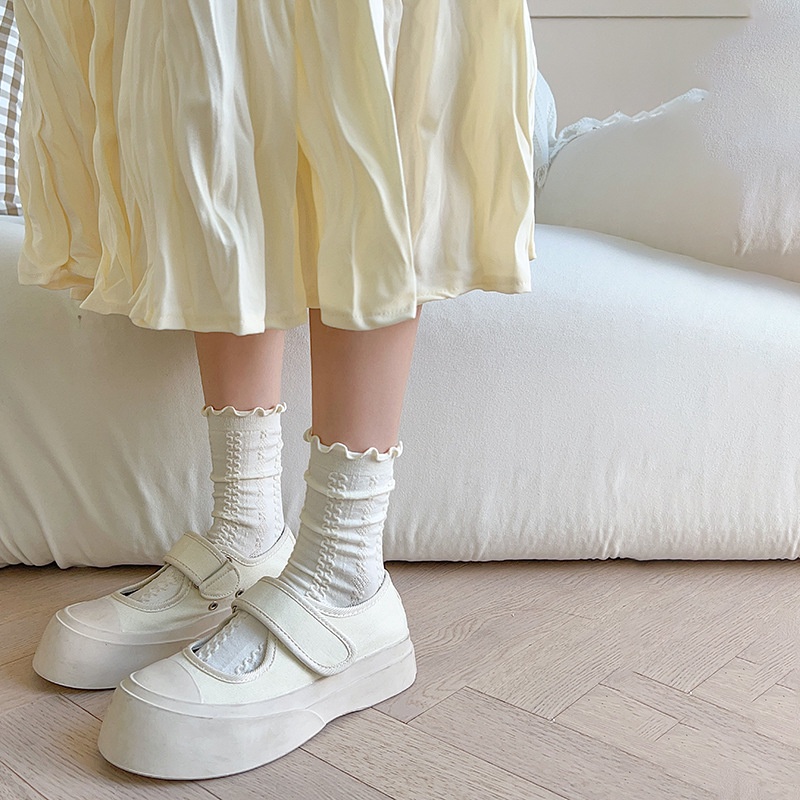 🌈พร้อมส่งจากไทย🧦ถุงเท้าผู้หญิง JK สีทึบ สไตล์ญี่ปุ่น ตกแต่งด้วยลูกไม้ นุ่ม สบาย