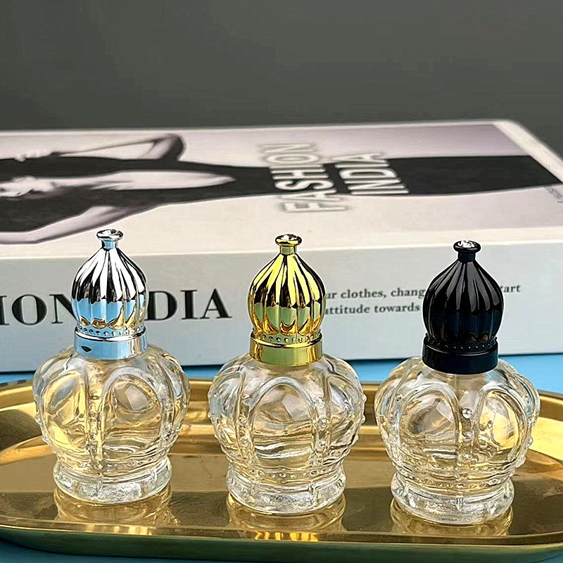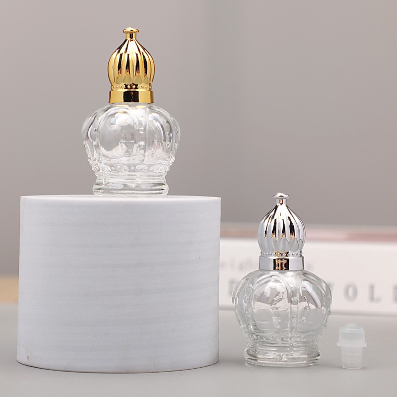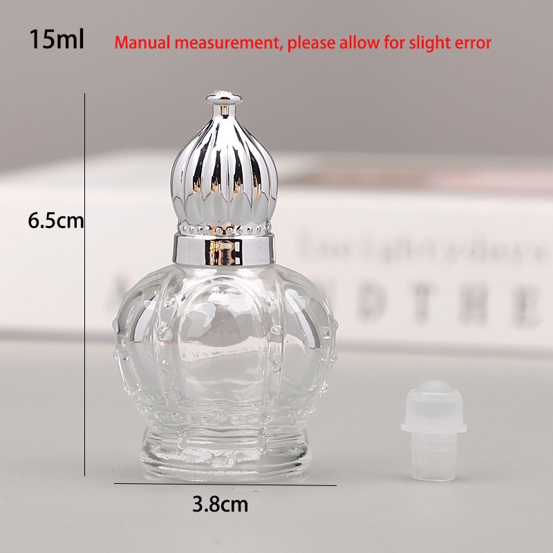 ขวดน้ําหอมเปล่า แบบลูกกลิ้ง รูปมงกุฎ ขนาด 15 มล. สีโปร่งใส เหมาะกับการเดินทาง