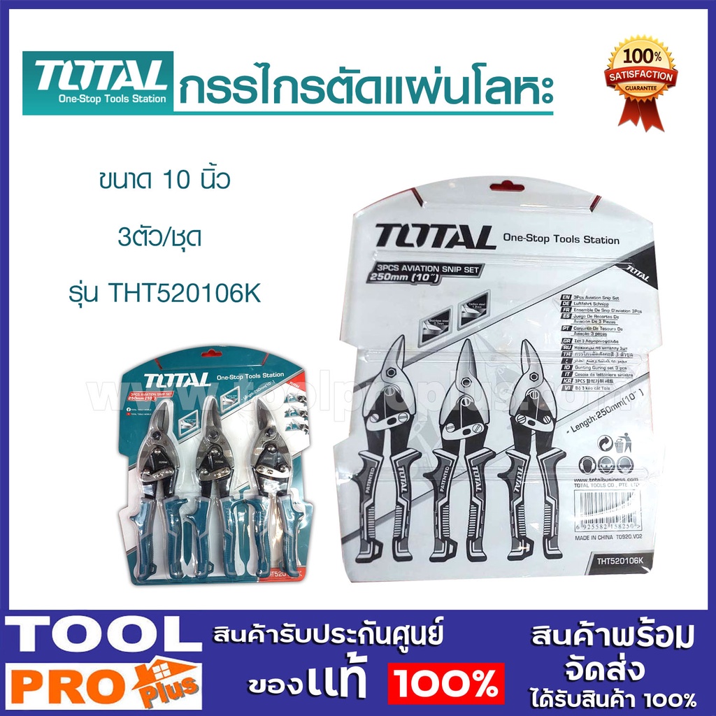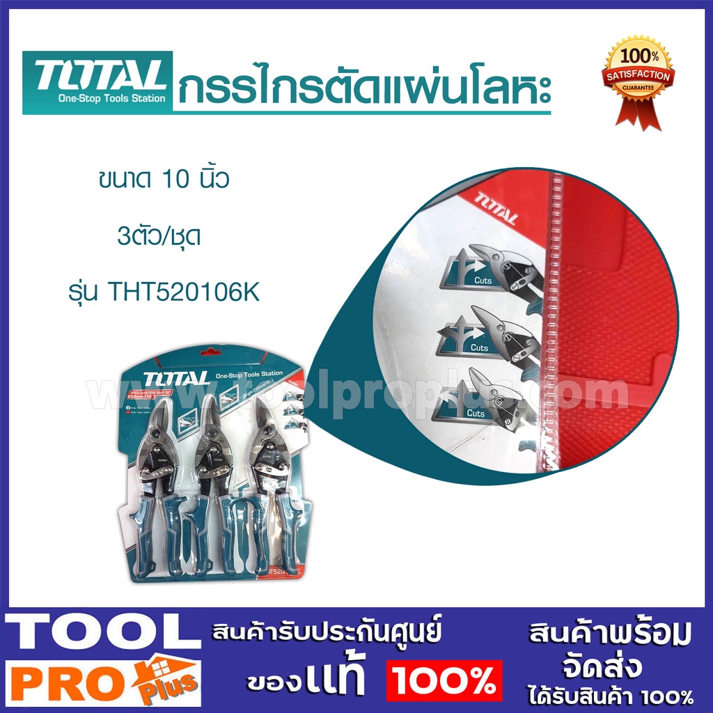 *ในชุดประกอบด้วย -กรรไกรตัดแผ่นโลหะ ตัดซ้าย -กรรไกรตัดแผ่นโลหะ ตัดตรง -กรรไกรตัดแผ่นโลหะ ตัดขวา -ขนาด 10 นิ้ว (250 มม.) -ความสามารถในการตัด -Carbon steel ≤1.2 mm -Stainless steel ≤0.7mm