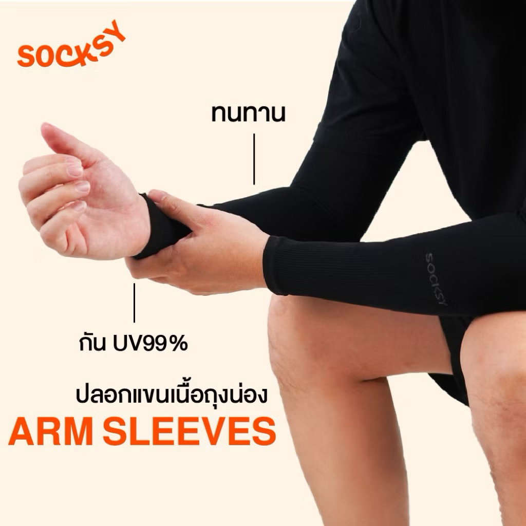 ปลอกแขนกัน UV 99% เนื้อถุงน่อง ยืดหยุ่น กระชับ ระบายอากาศ ปิดถึงข้อมือ