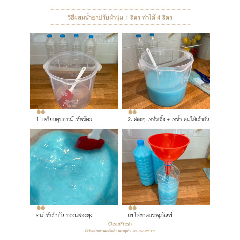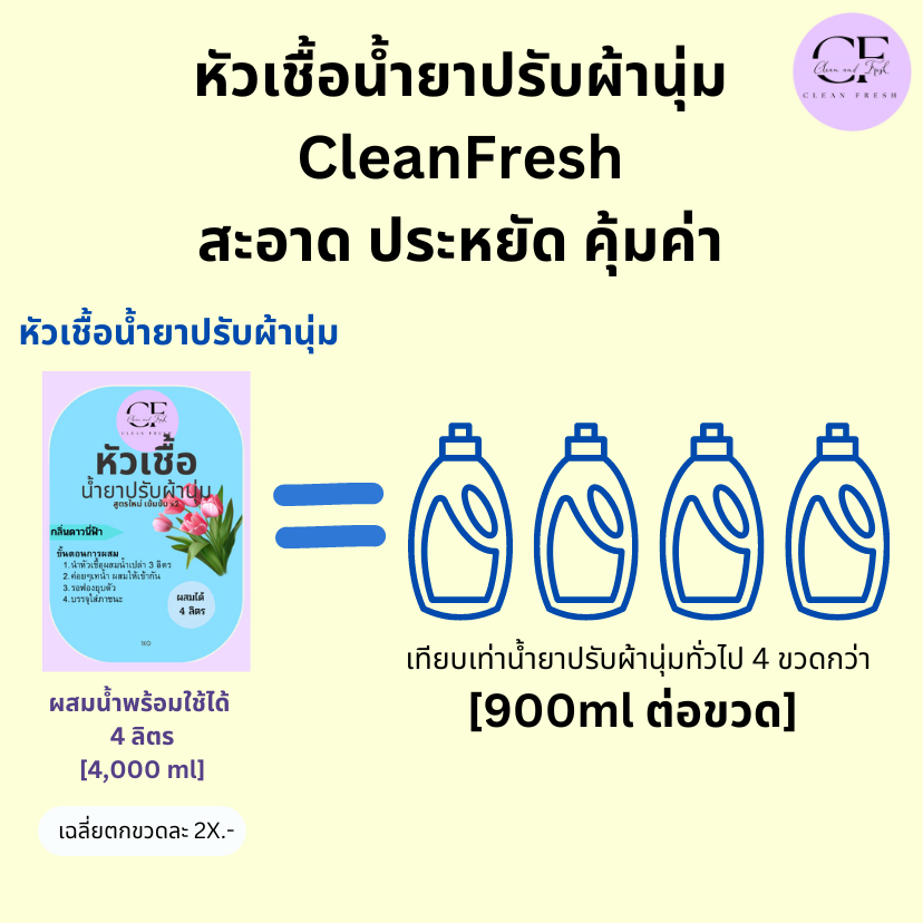 👉 หัวเชื้อน้ำยาปรับผ้านุ่ม น้ำยาปรับผ้านุ่มเข้มข้น CleanFresh ทำได้สูงสุด 3.5 ลิตร