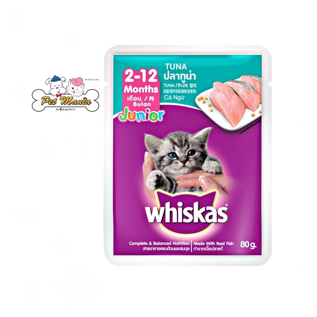 Whiskas Pouch Junior วิสกัส อาหารเปียก สำหรับลูกแมว รสปลาทูน่า ขนาด80g.