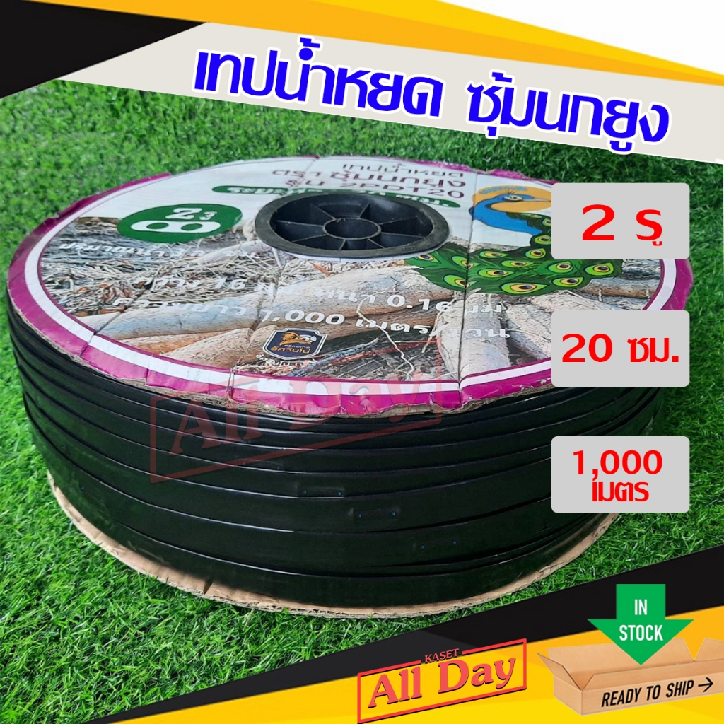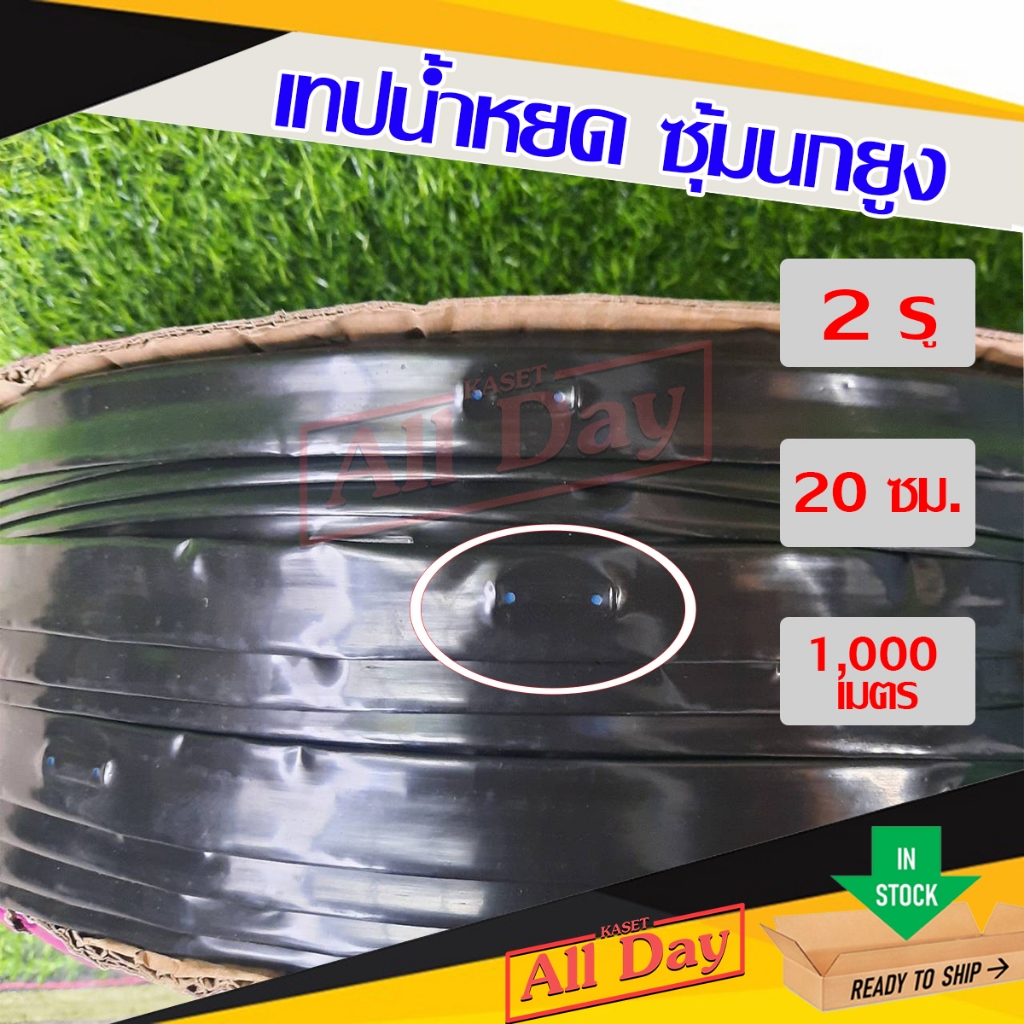 เทปน้ำหยด สายน้ำหยด 2 รู คู่ ระยะห่าง 20 cm ยาว 1000 เมตร หนา 0.16 mm