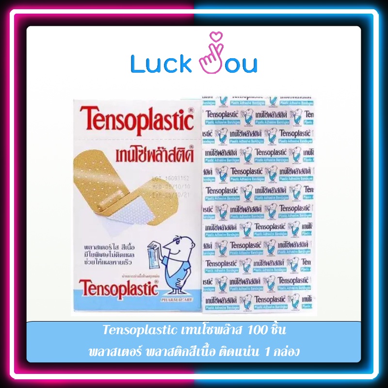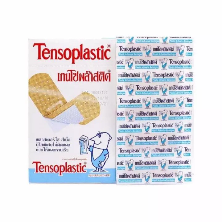 Tensoplastic เทนโซพล๊าส 100 ชิ้น พลาสเตอร์ พลาสติกสีเนื้อ ติดแน่น 1 กล่อง (1192543)