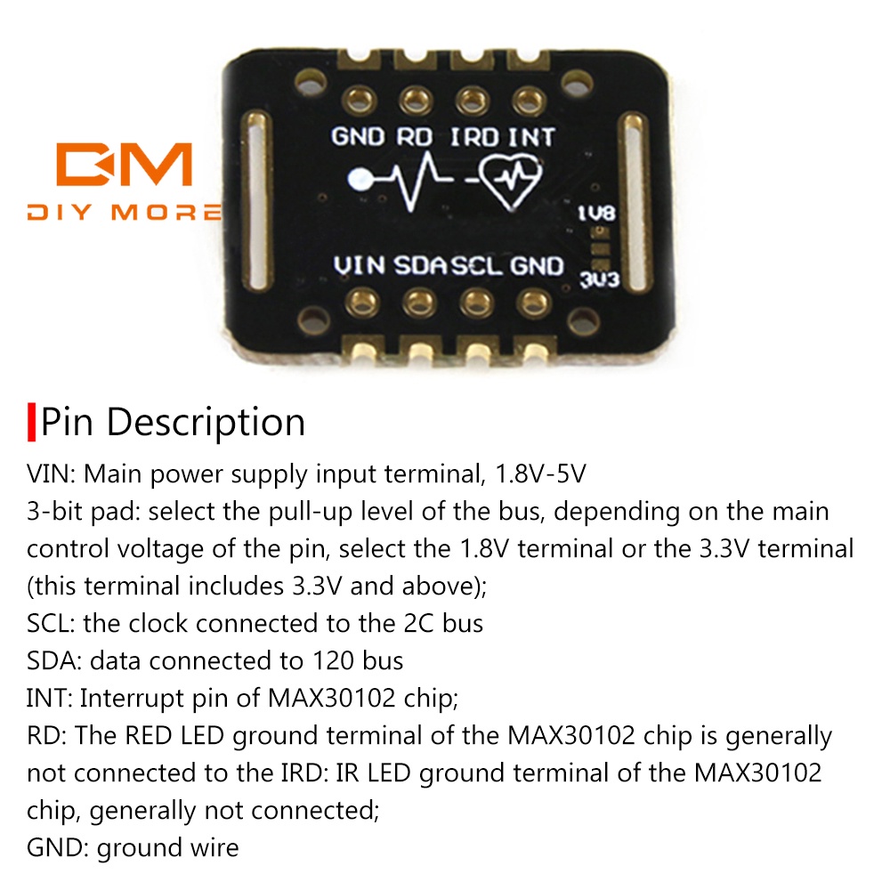 Diymore MAX30102 โมดูลเซนเซอร์วัดอัตราการเต้นของหัวใจ ออกซิเจนในเลือด