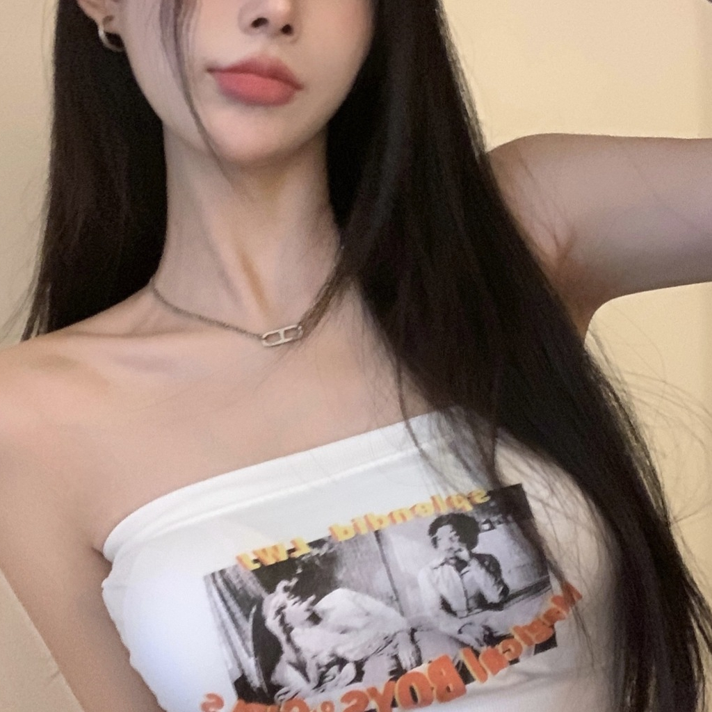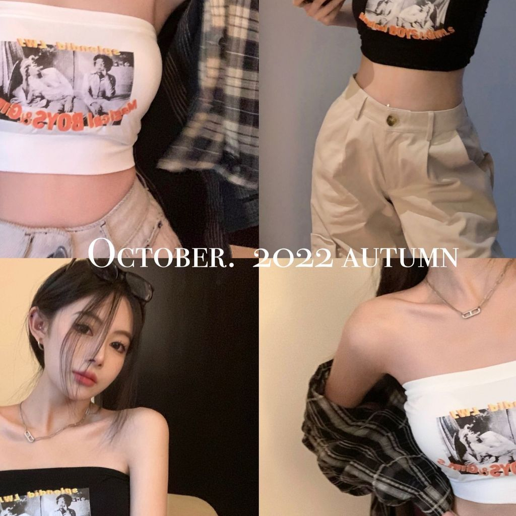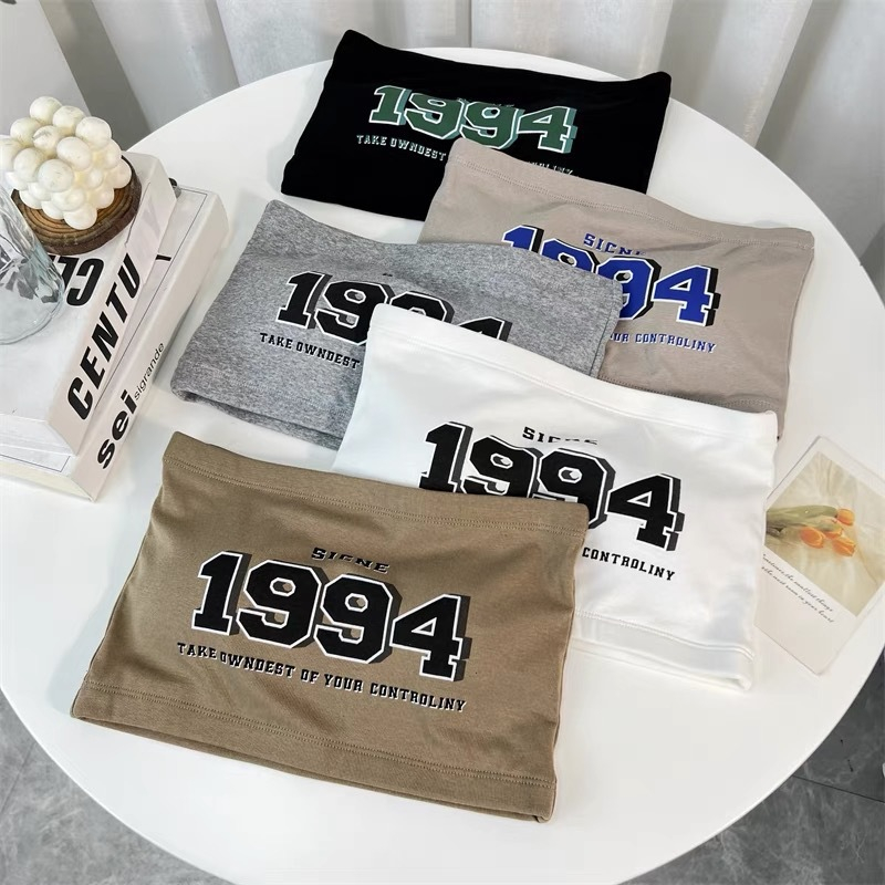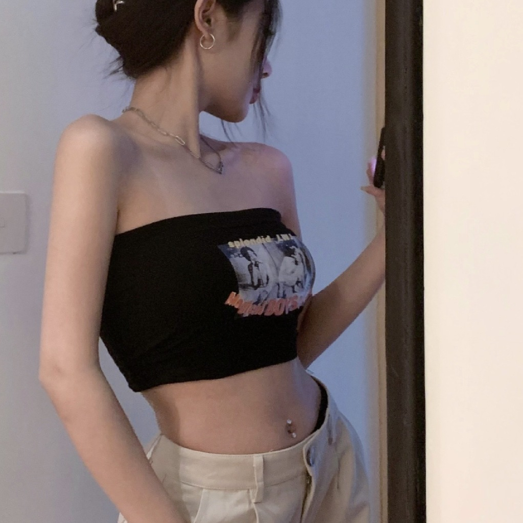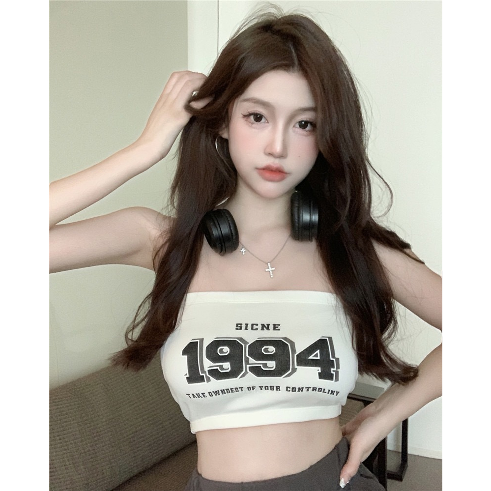 เสื้อเกาะอก เสื้อเกาะอกลายวินเทจ y2k มีฟองน้ำในตัว ผ้ายืด พร้อมส่งในไทย