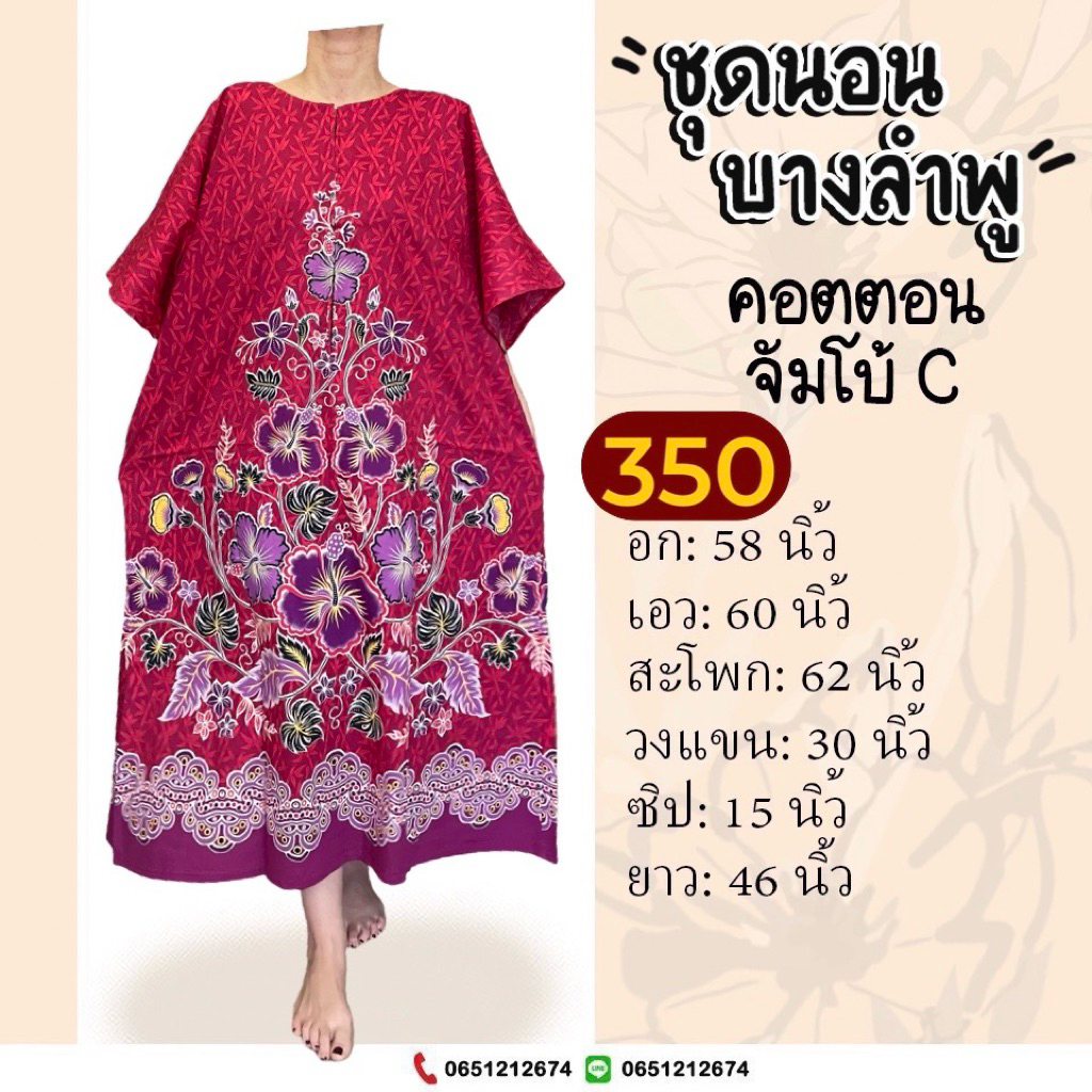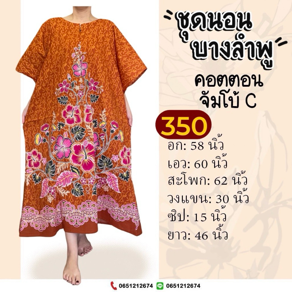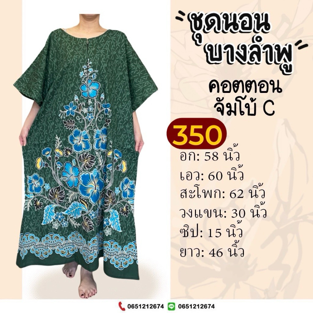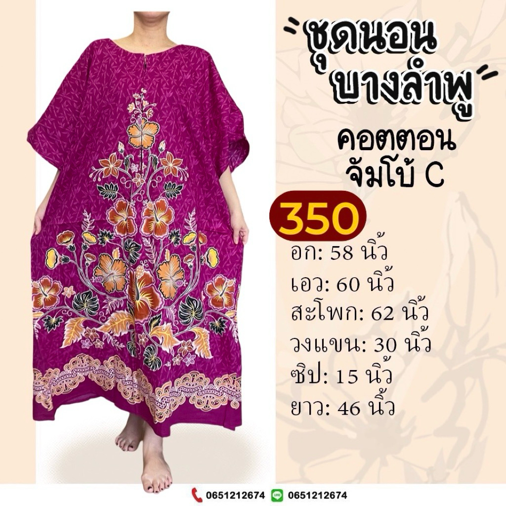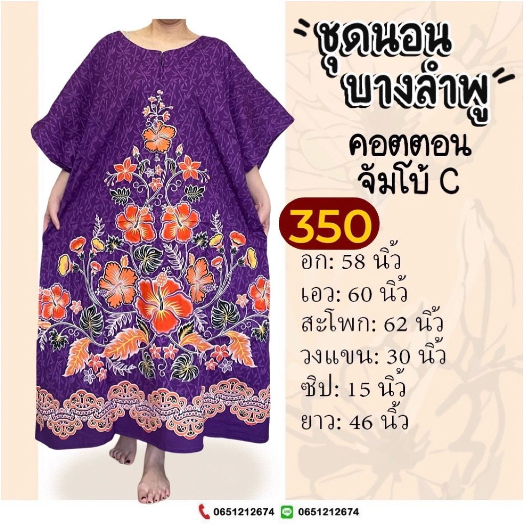 ชุดนอนจัมโบ้ C18 อก 58 นิ้ว ผ้าคอตตอนใส่สบาย มีแขน ชายกว้างใส่สบาย ชุดนอน ชุดอยู่บ้าน