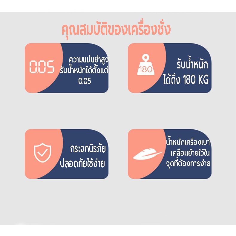 รับรองน้ำหนักได้มาก พกพา เคลื่อนย้ายได้สะดวก รูปทรงไม่ซ้ำ จำเจ เหมือนตาชั่งทั่วไป สามารถวัดอุณหภูมิได้