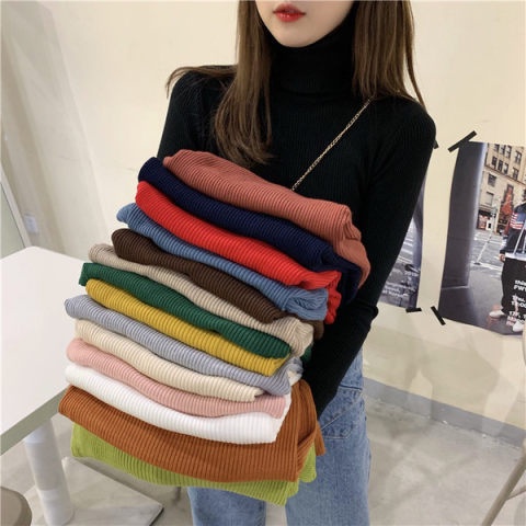 พร้อมส่ง🍍เสื้อไหมพรมแขนยาว คอเต่าพับคอได้ ผ้านิ่มยืดได้เยอะ 20สี