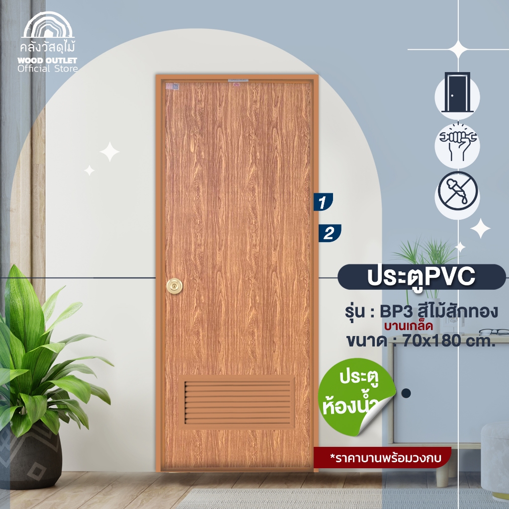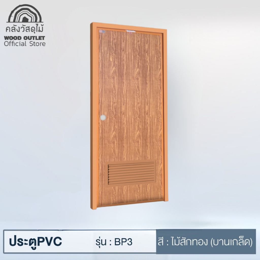 ประตูPVC+วงกบ (บานเรียบ) รุ่น BP3 ลายไม้สักทอง เลือกขนาด70×180 cm / 70×200 cm