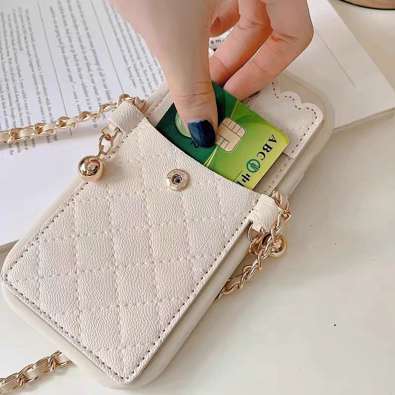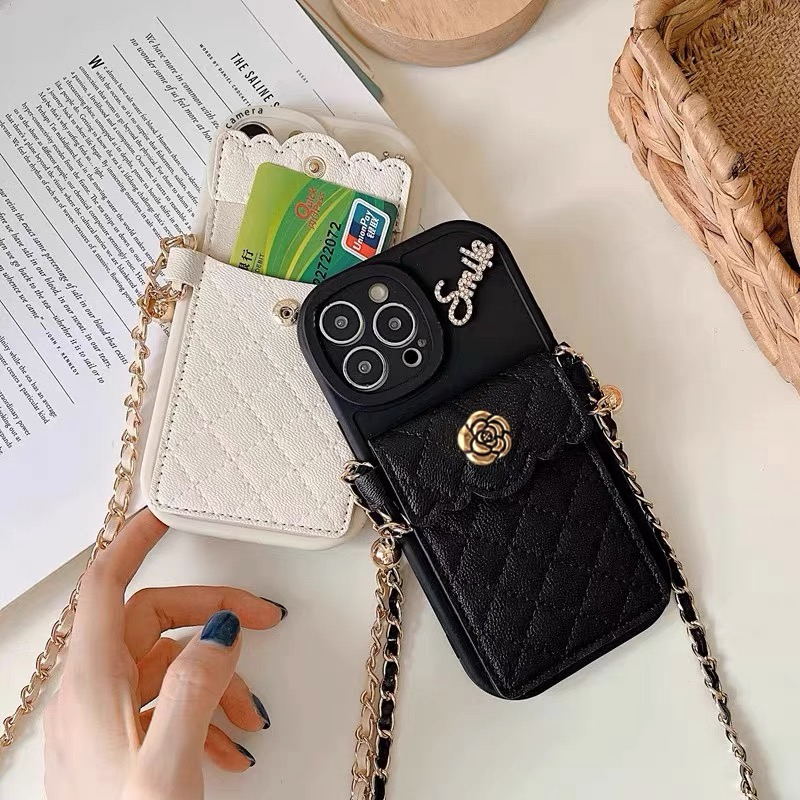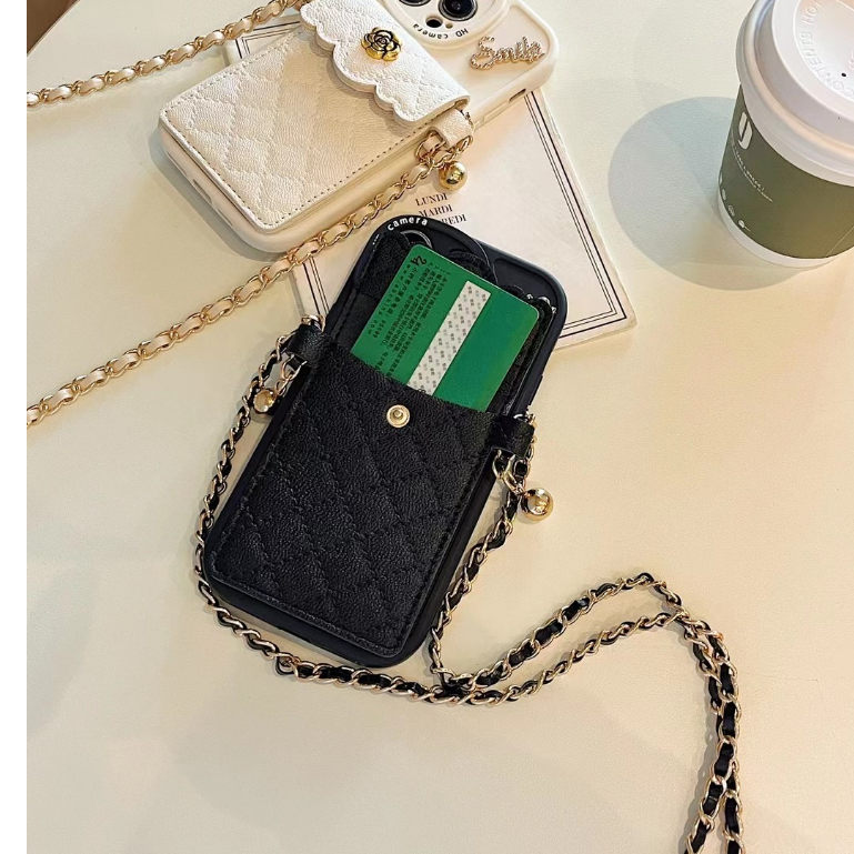 Nice กระเป๋าการ์ดดอกเคมีเลียพร้อมเคสโทรศัพท์แบบโซ่เข้ากันได้สําหรับ iphone 17 16 15 14 13 PRO MAX ins 12 PRO MAX 11 PRO maxsoft tpu เคสโทรศัพท์ x/xsmax สไตล์ใหม่ 16promax 15proamx