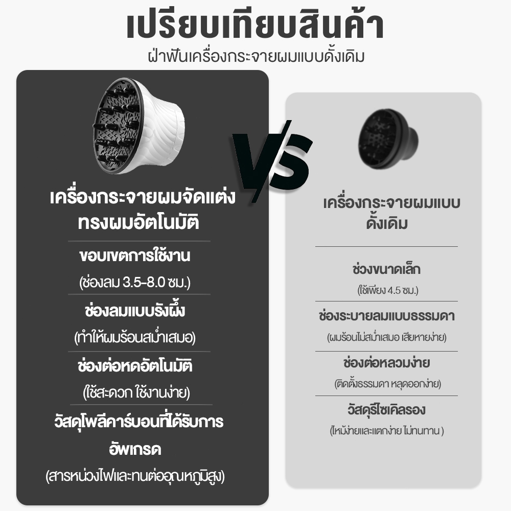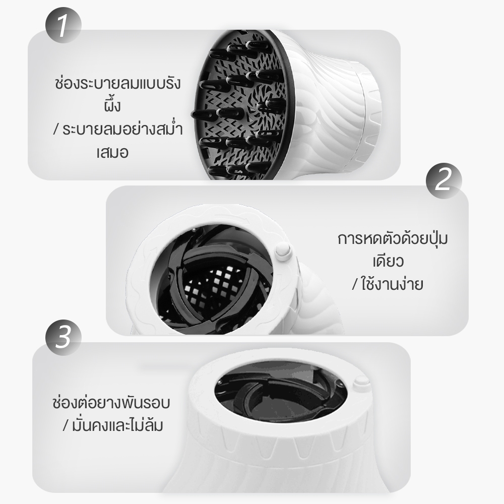 เครื่องกระจายผมจัดทรงผม เป่าลอนผมธรรมชาติ ช่องต่อแบบสากล/ออกลมอย่างสม่ําเสมอ / รดูแลเส้นผม ไม่ทําร้ายเส้นผม