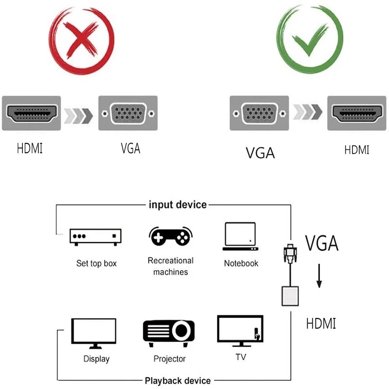 – ส่งจาก VGA เป็น HDMI ทางเดียวเท่านั้นไม่รองรับ HDMI เป็น VGA