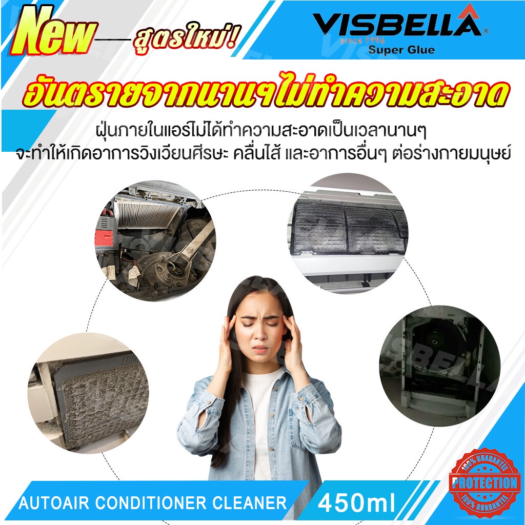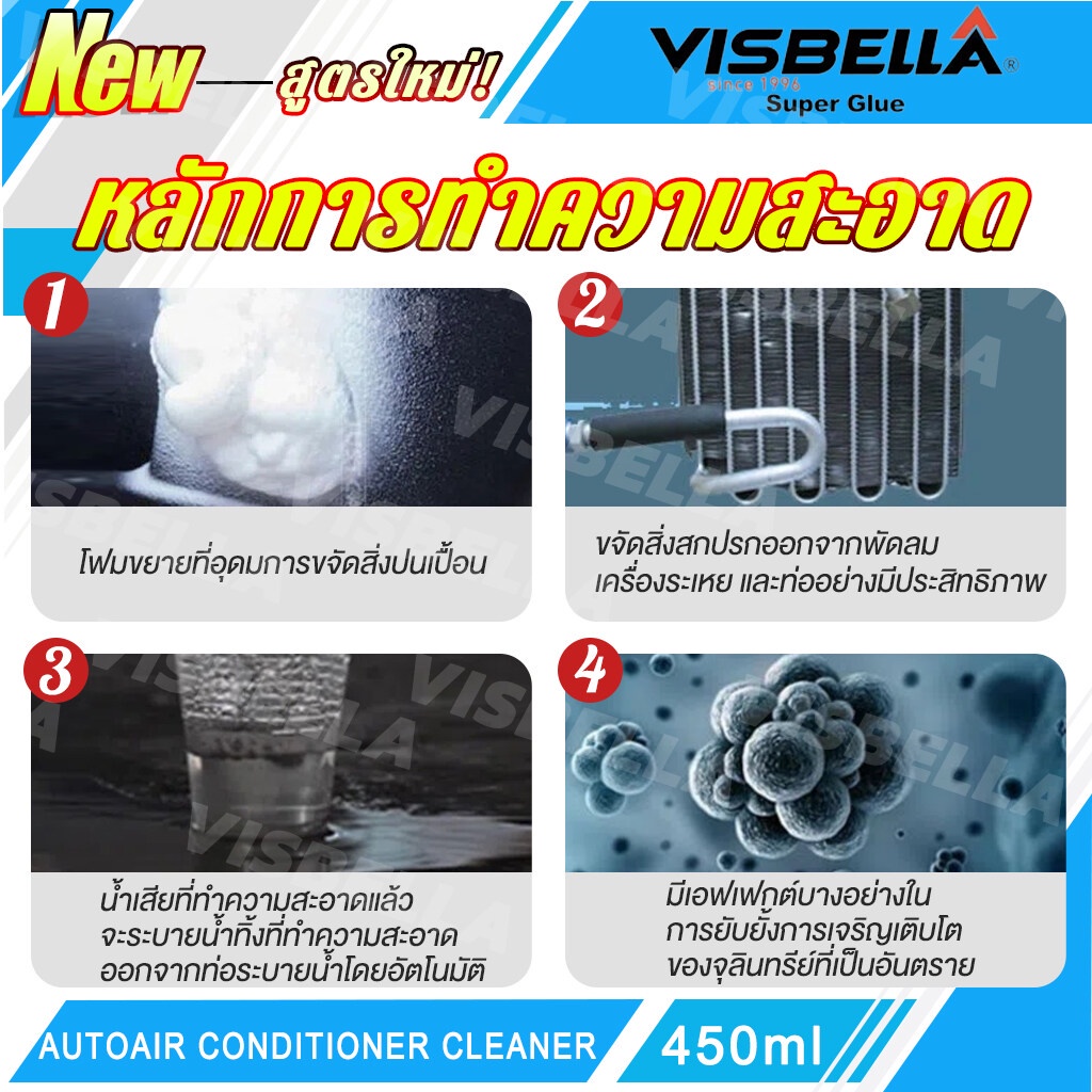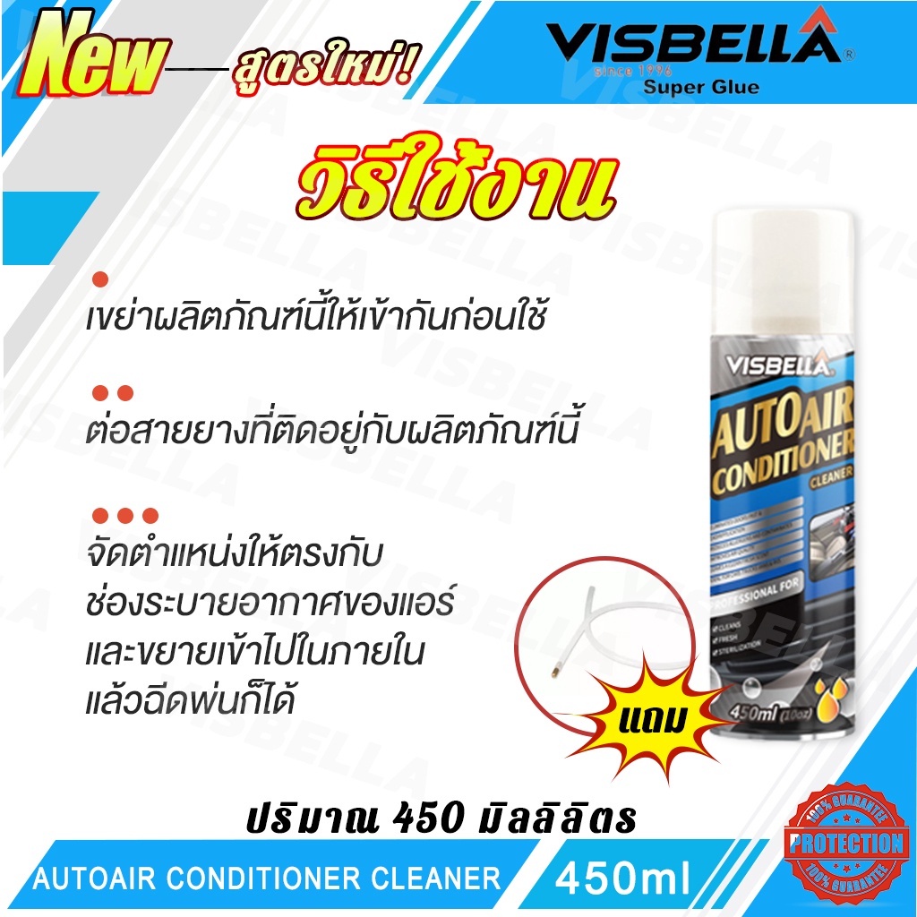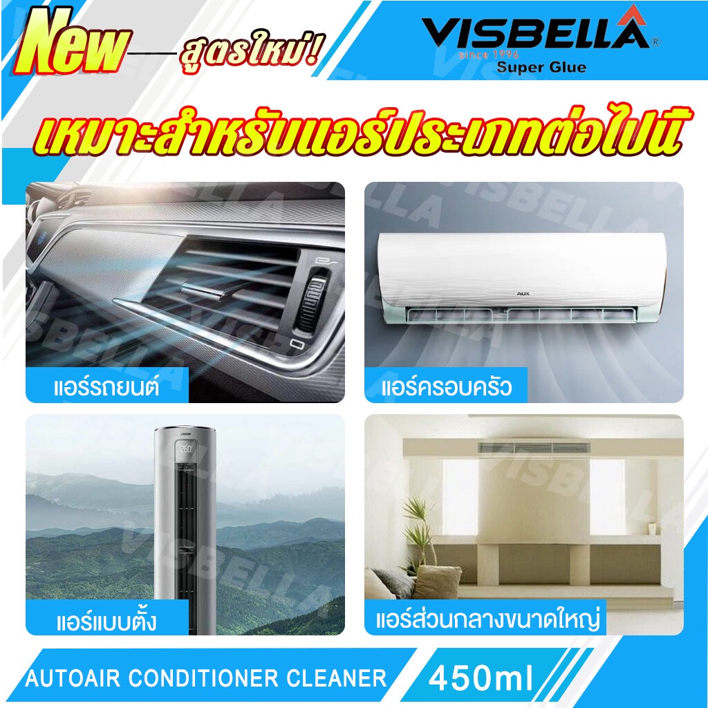 VISBELLA สเปรย์ล้างแอร์ โฟมสเปรย์ล้างแอร์รถยนต์ 450ml กำจัดกลิ่นและเพิ่มความหอมสดชื่นให้กับอากาศภายในรถ