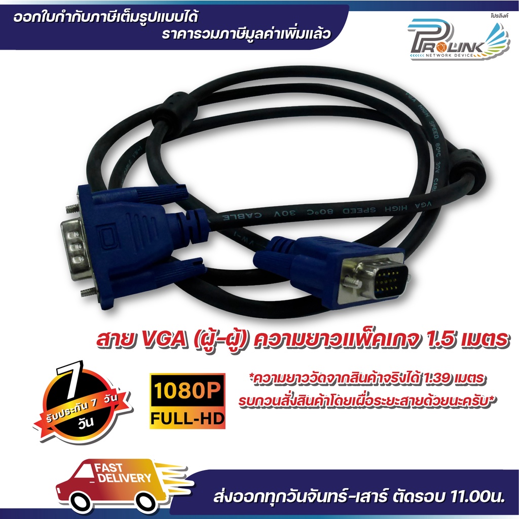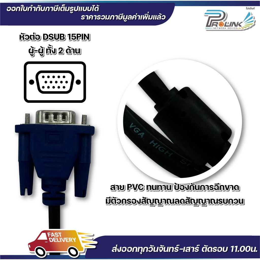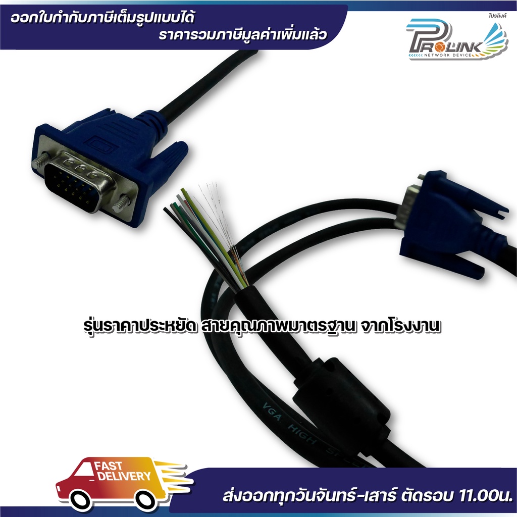 สาย vga คุณภาพดี สีดำ ยาว 1.5m. / 3m / 5m / 10m. สายต่อคอมพิวเตอร์ สายต่อจอภาพ โปรเจ็คเตอร์ vga cable prolinkshop