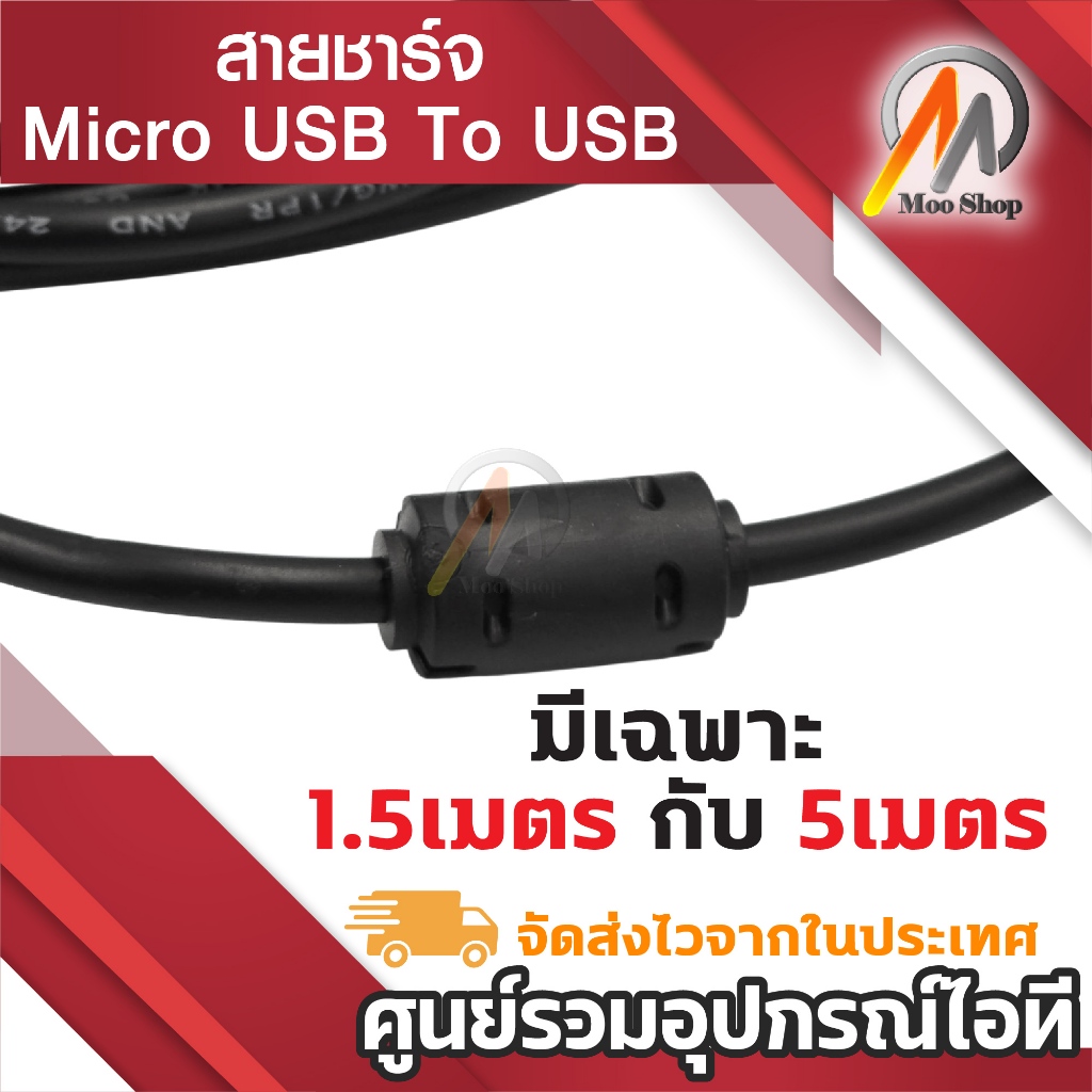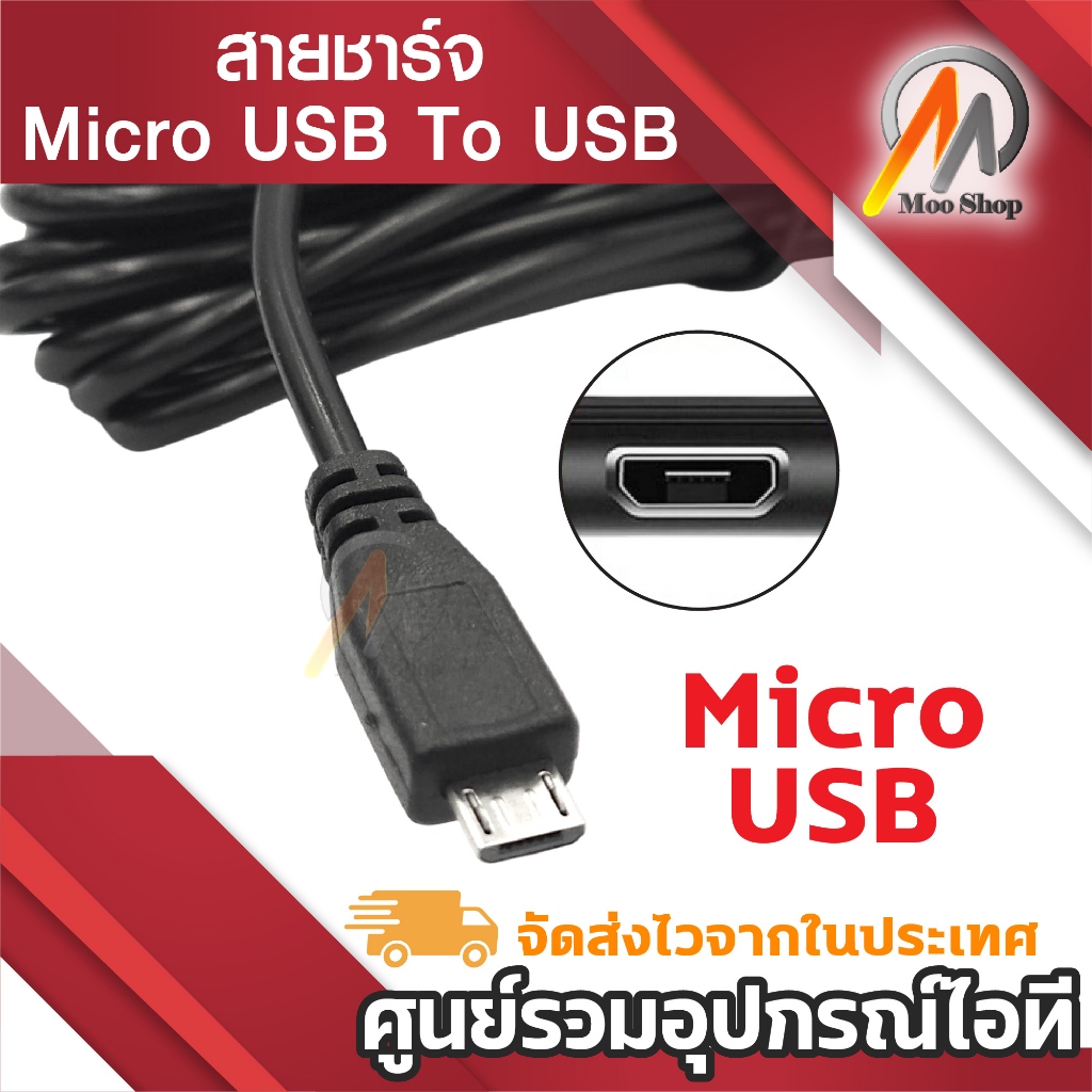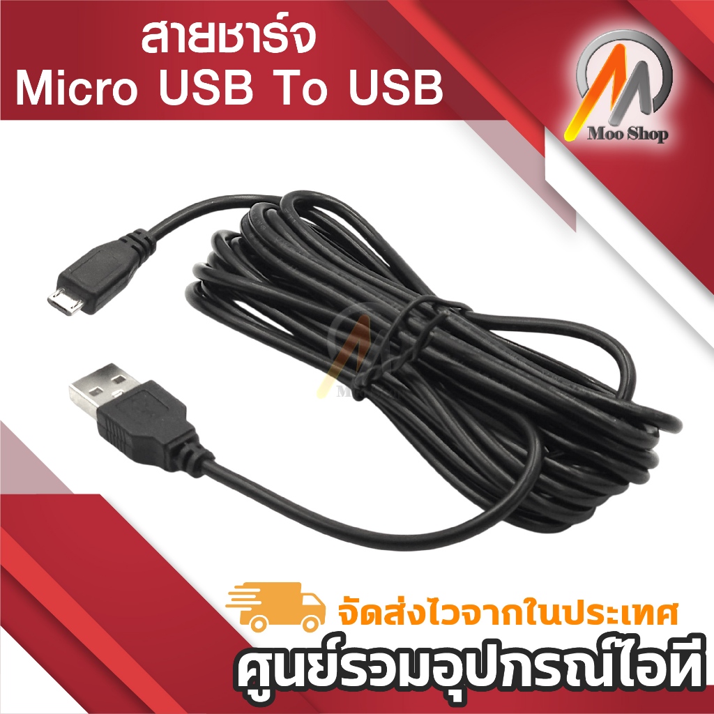 หยิบใส่ตะกร้าสาย Micro USB ยาว 1/3/5m ใช้เป็น สายชาร์จแบตเตอรี่ สายชาร์จกล้องติดรถ