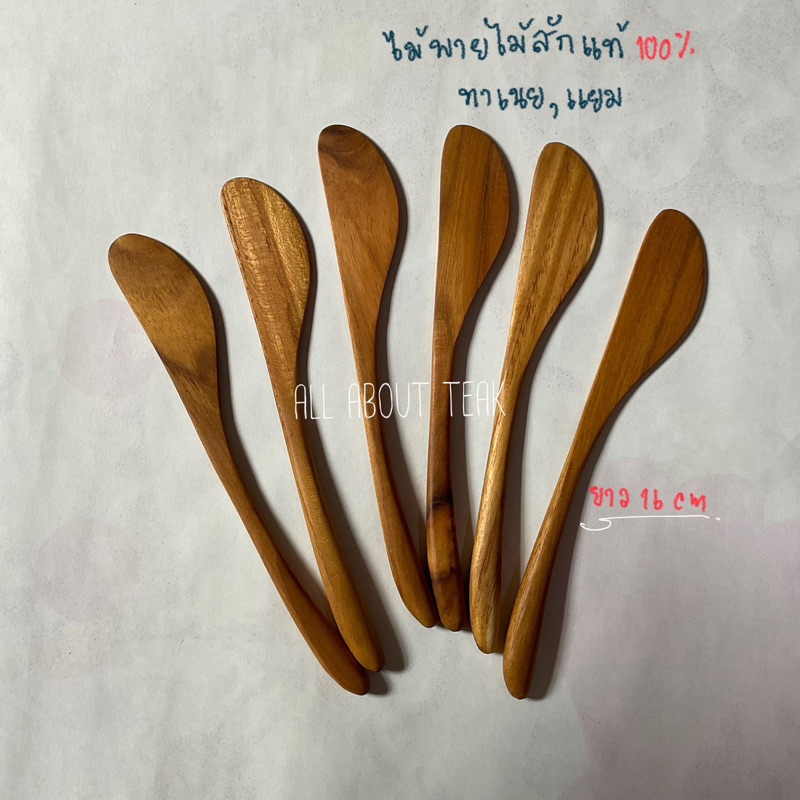 ไม้พายทาเนย ทาแยม ไม้สักแท้ (ยาว 16 cm)