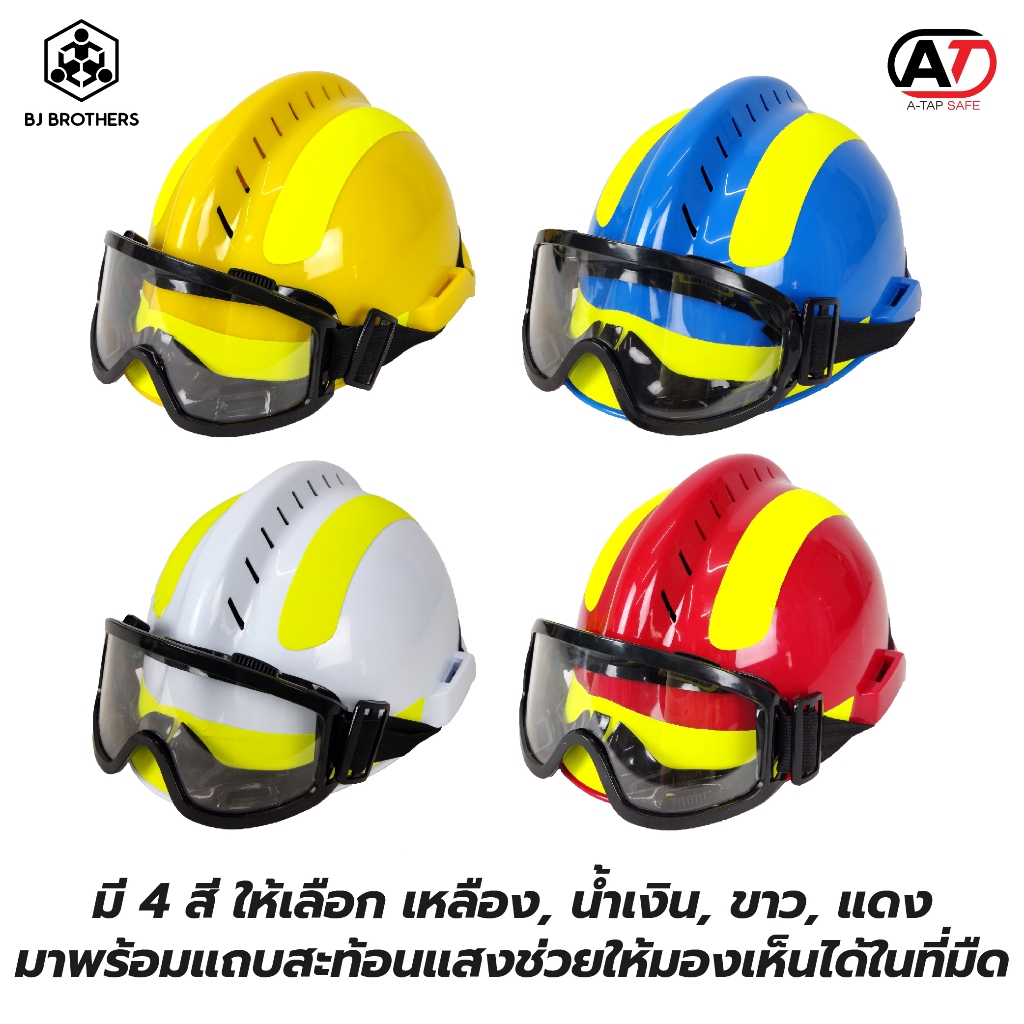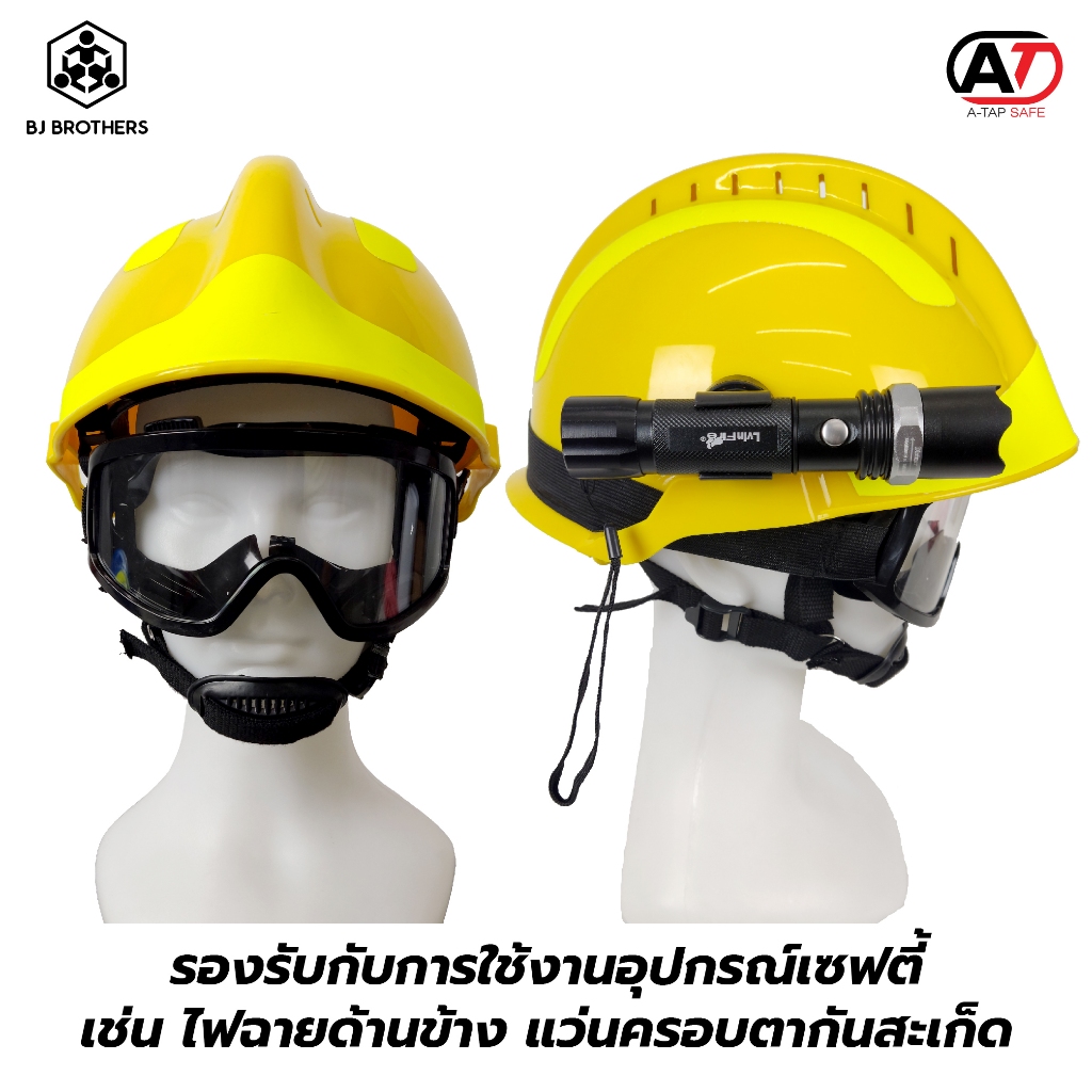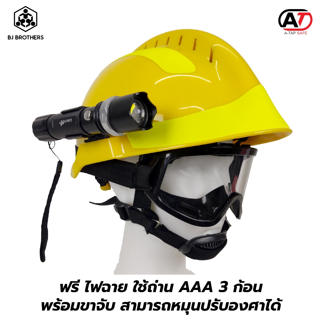 หมวกเซฟตี้ กู้ชีพกู้ภัย F2 งานดับเพลิงกู้ภัย พร้อมแว่นตาและไฟฉายข้าง