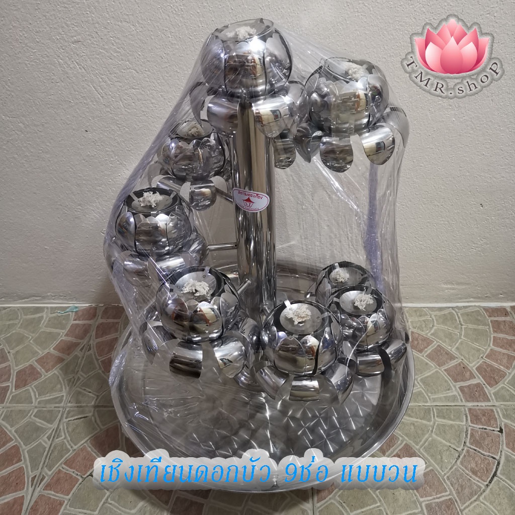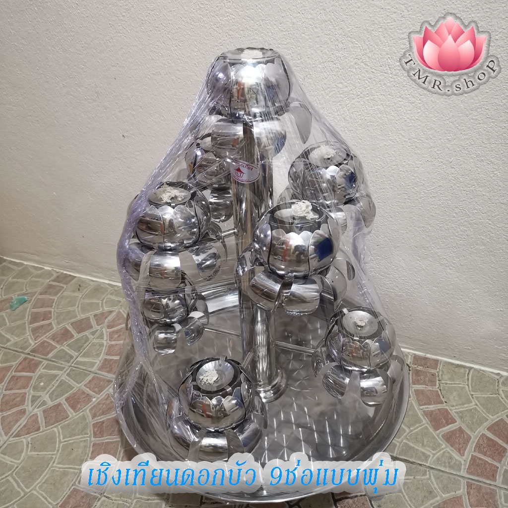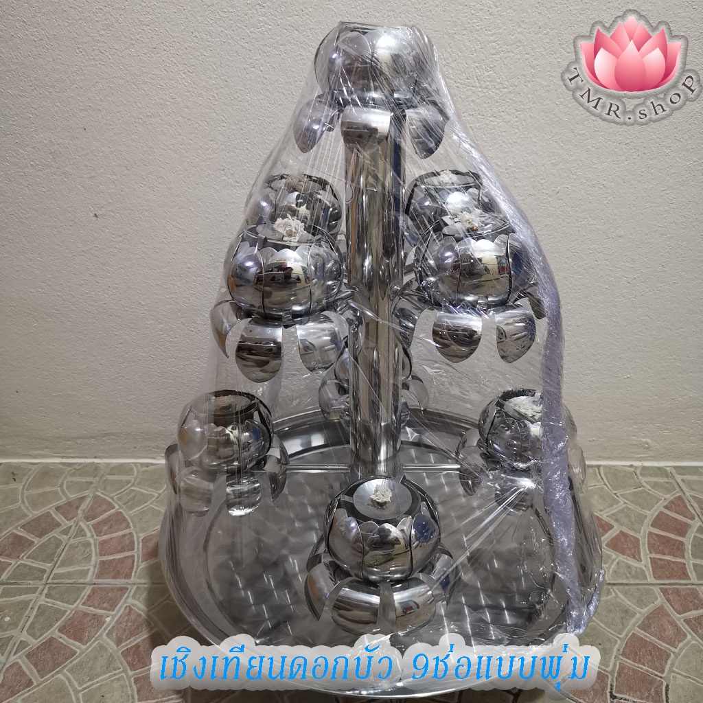 หยิบใส่ตะกร้าเชิงเทียนสแตนเลสดอกบัว9ช่อ แบบพุ่ม/แบบวน