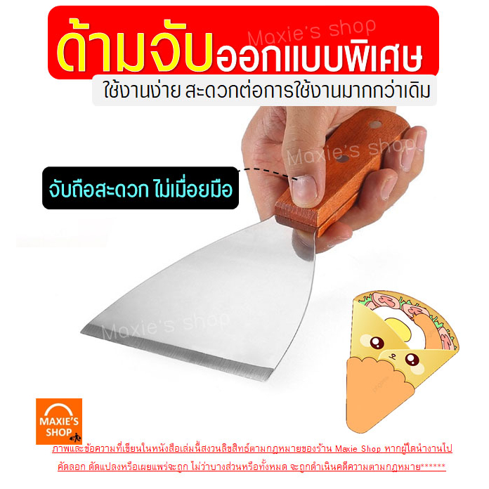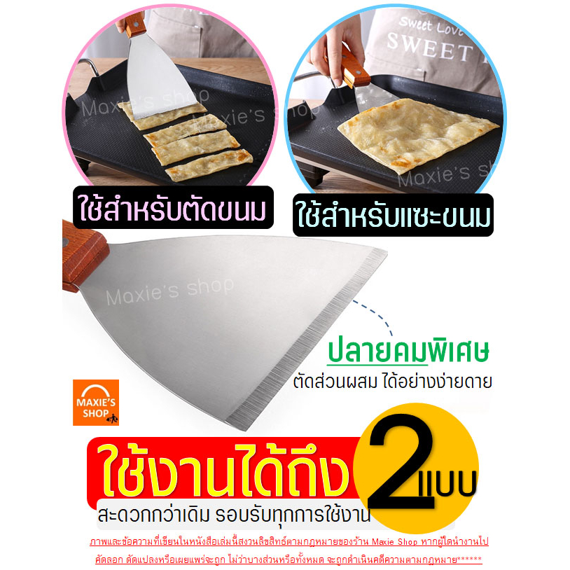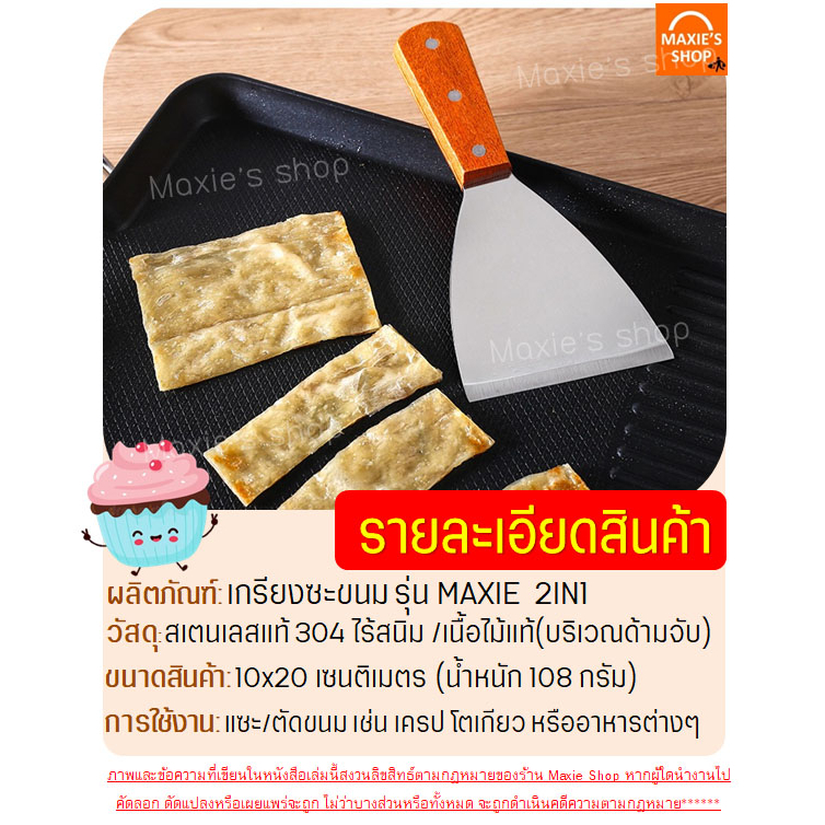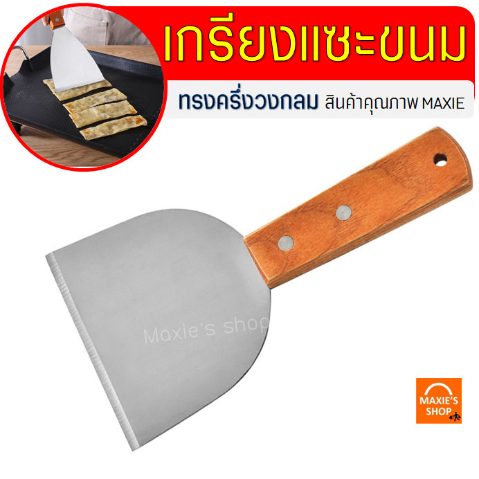 เกรียงแซะขนม ญี่ปุ่น สแตนเลสแท้ ทรงครึ่งวงกลม MAXIE เหมาะกับการใช้กับขนม/อาหารทั่วไป (มีให้เลือก 2 แบบ คือ เกรียงพลาสติก และเกรียงสแตนเลส ขนาด 10×20 เซนติเมตร น้ำหนัก 108 กรัม)