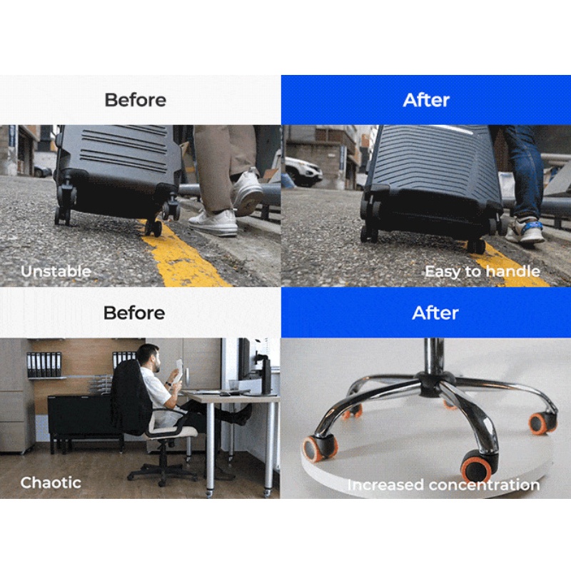 หุ้มล้อด้วยรองเท้าล้อเลื่อนซิลิโคนจะช่วยลดแรงเสียดทานและปรับปรุงเสียงรบกวนที่ตามมาได้อย่างมีประสิทธิภาพ ตอนนี้ค