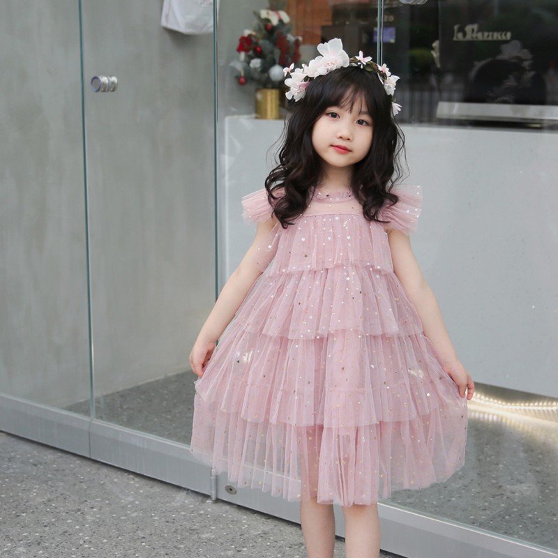 ชุดเดรสกระโปรงสั้น ลายดอกไม้ สีชมพู แวววาว แฟชั่นเจ้าหญิง สําหรับเด็กผู้หญิง ใส่ไปงานวันเกิด งานแต่งงาน