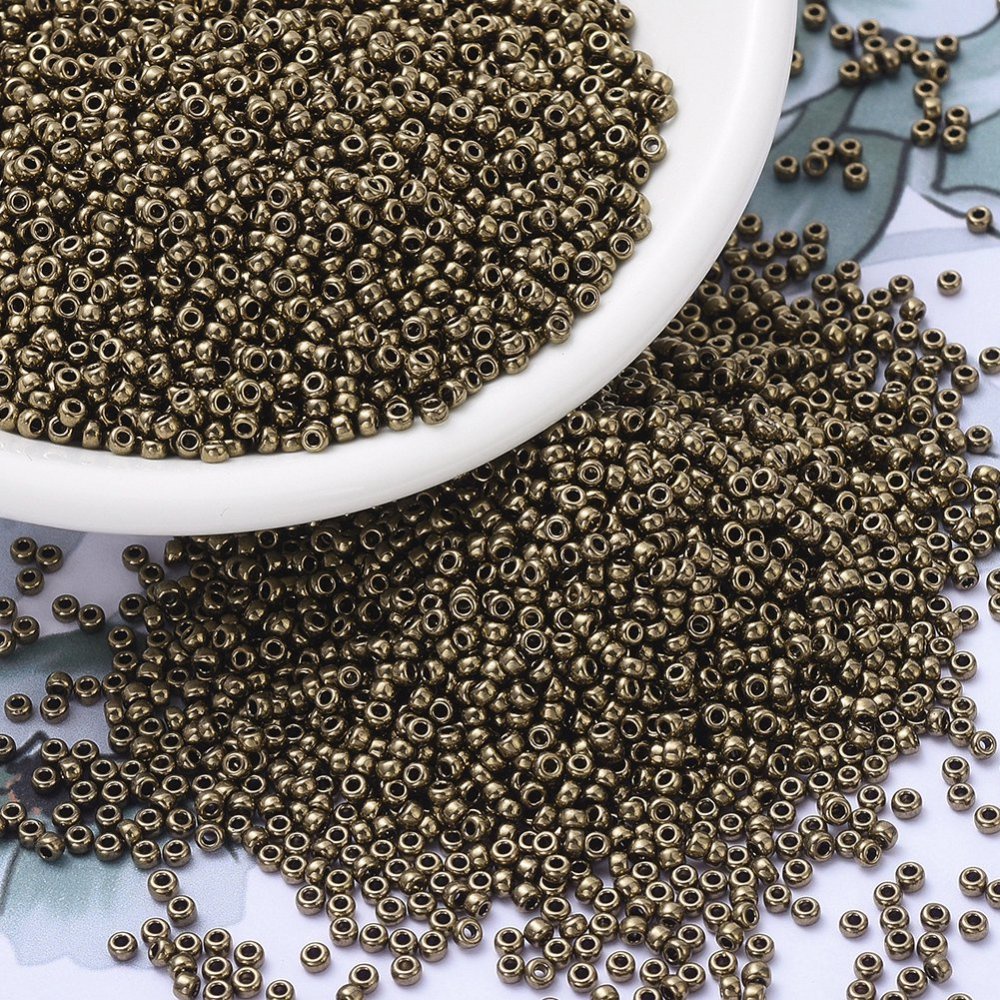 ลูกปัด Rocailles ทรงกลม MIYUKI, ลูกปัดเมล็ดญี่ปุ่น, 11/0, สีเมทัลลิก, (RR-191) ชุบท