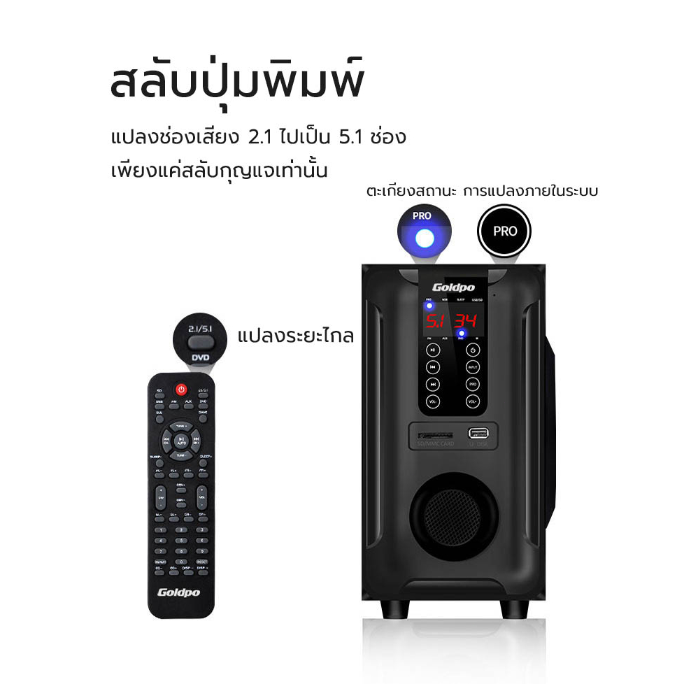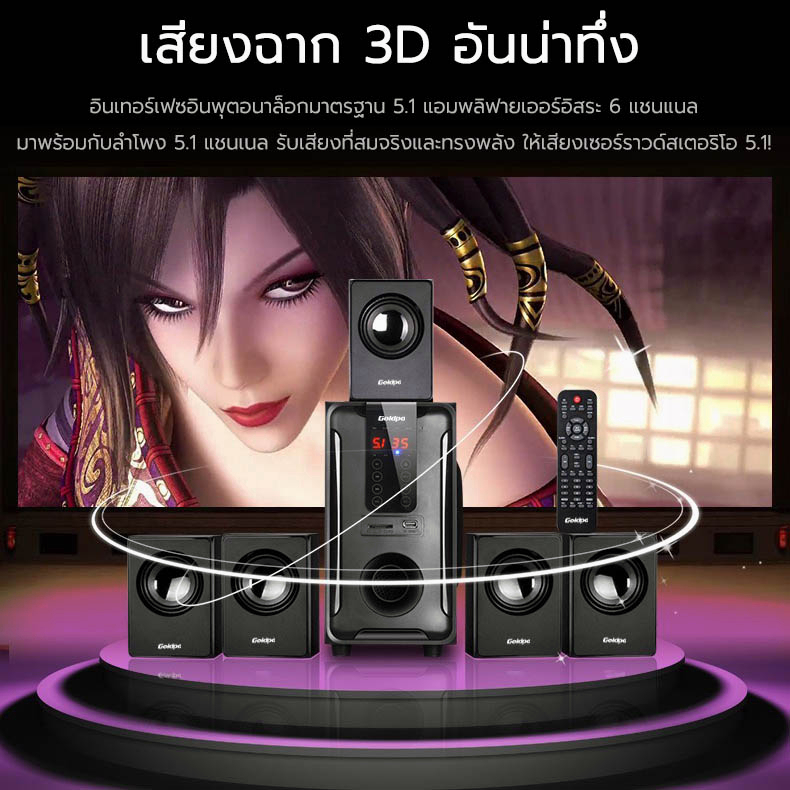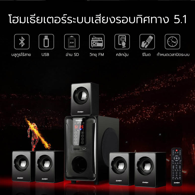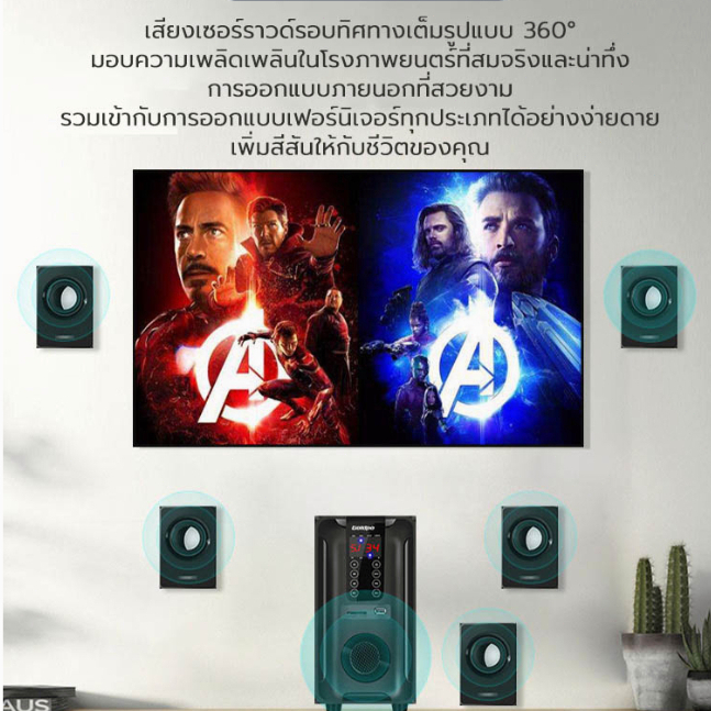 ลำโพง ซับวูฟเฟอร์ ลำโพงบลูทูธ ลําโพงโฮมเธียเตอร์ Bluetooth 5.1 สามารถเชื่อมต่อคอมพิวเตอร์ โทรศัพท์/ดิสก์ U FM